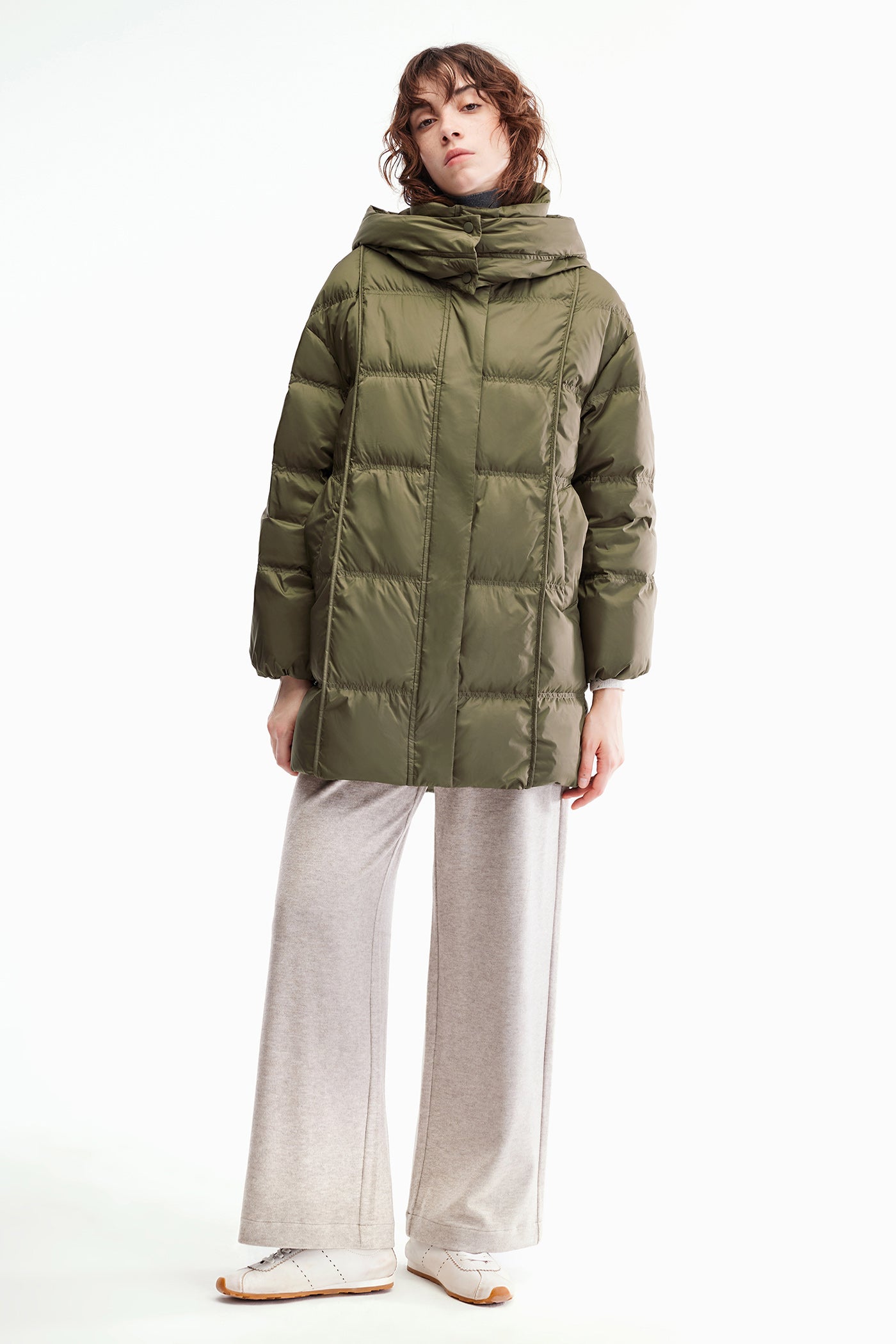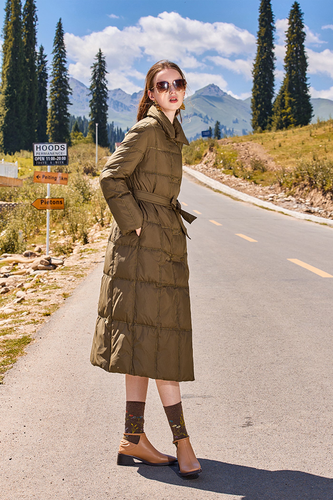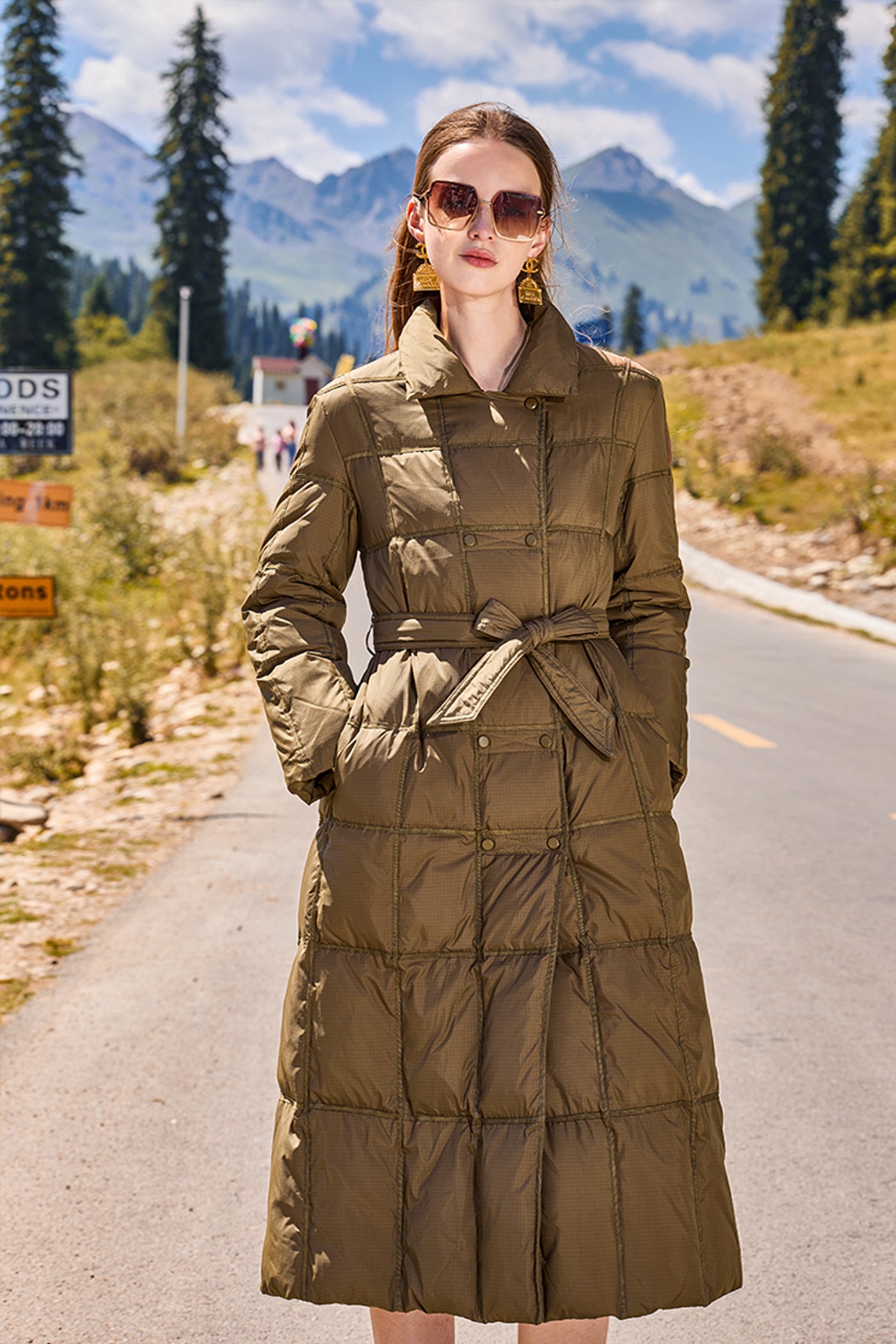 KAMILAN Women's Checkered Wool Coat – 2025 Autumn/Winter New Midi Overcoat with White Goose Down Panels