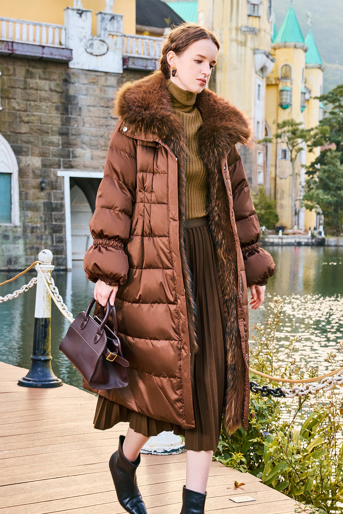 KAMILAN Women's Long White Goose Down Coat with Fox Fur Collar | 2025 Winter Luxury Outerwear