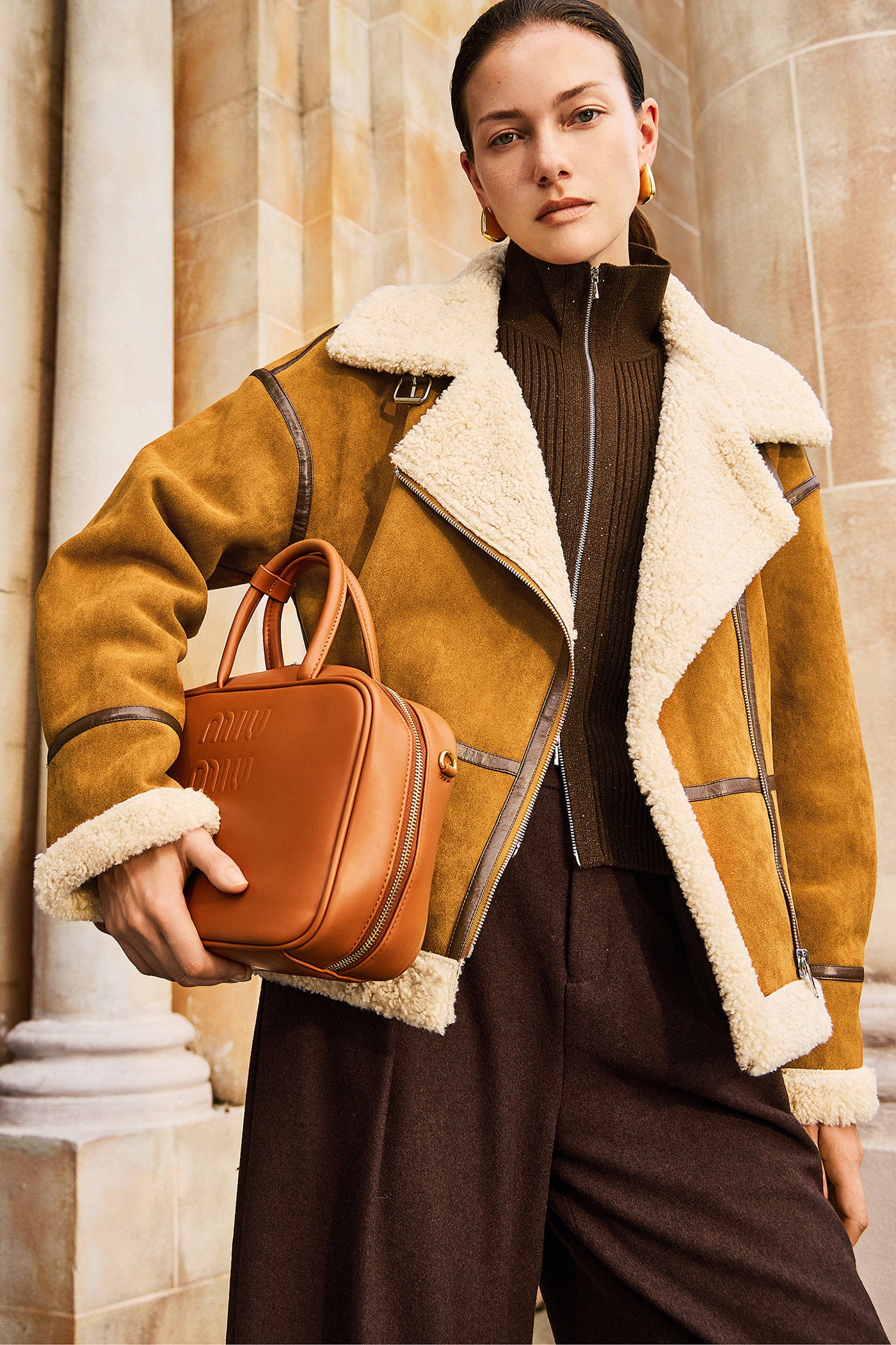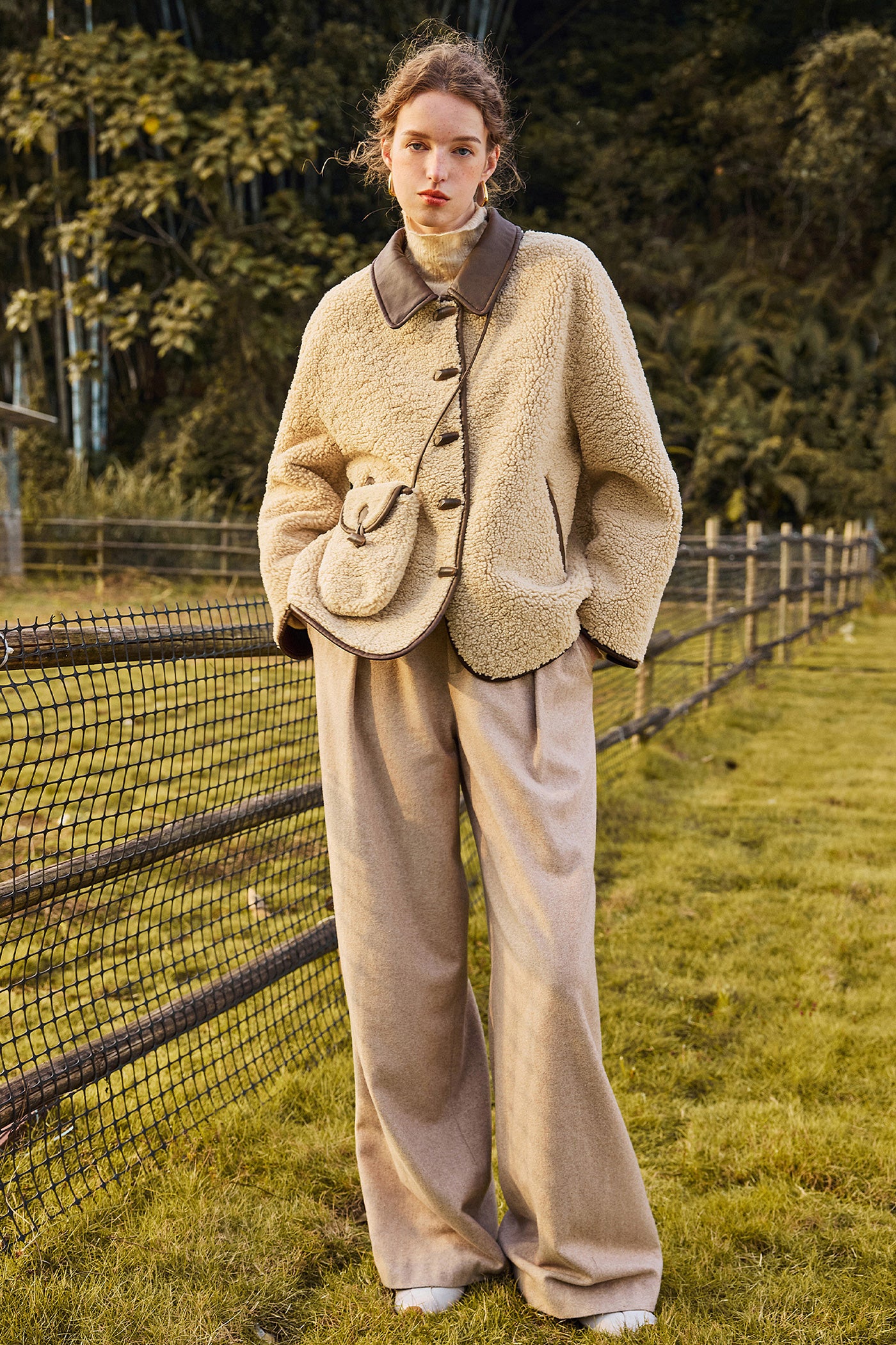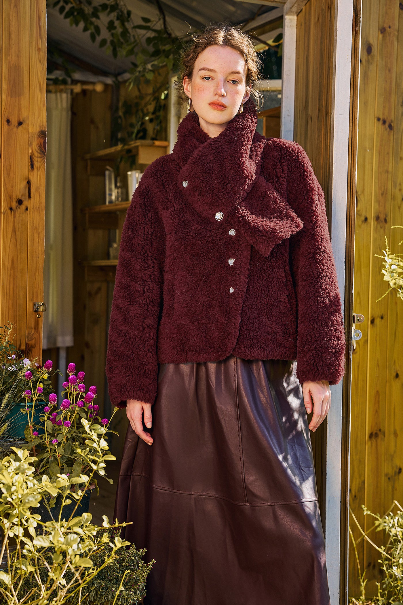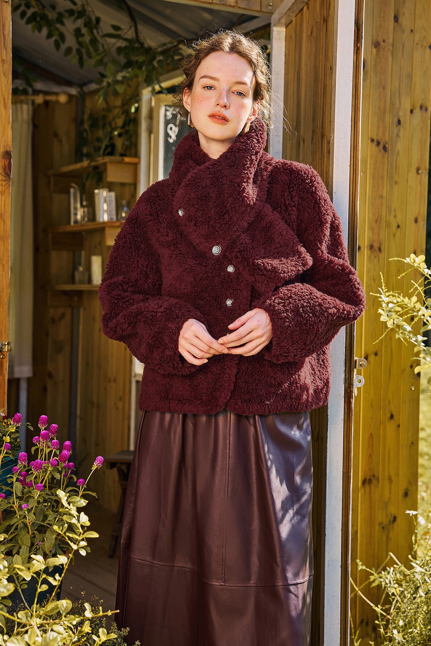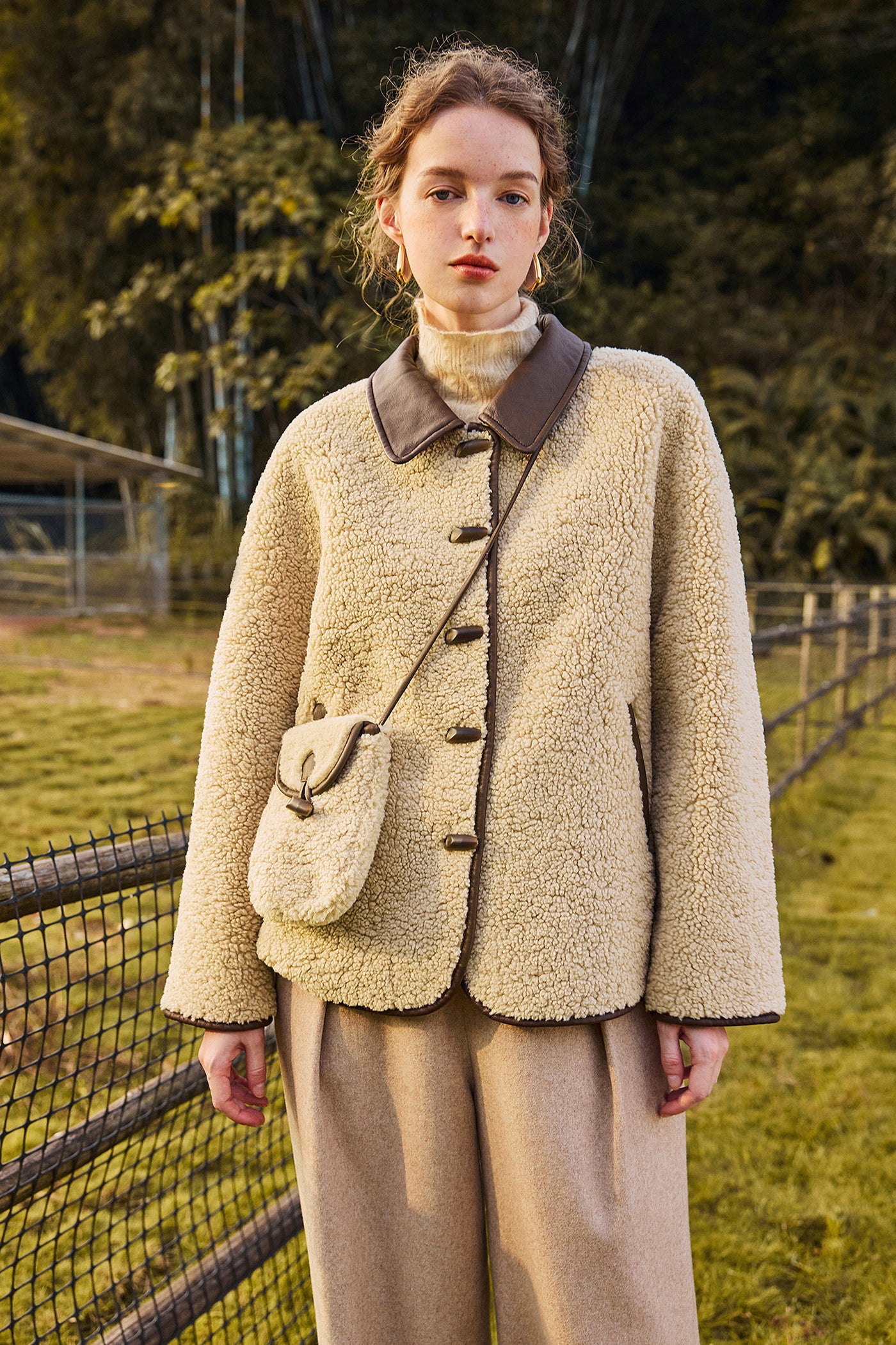 KAMILAN Women's Short Wool Jacket 2025 Winter Shearling Coat with Unique Design