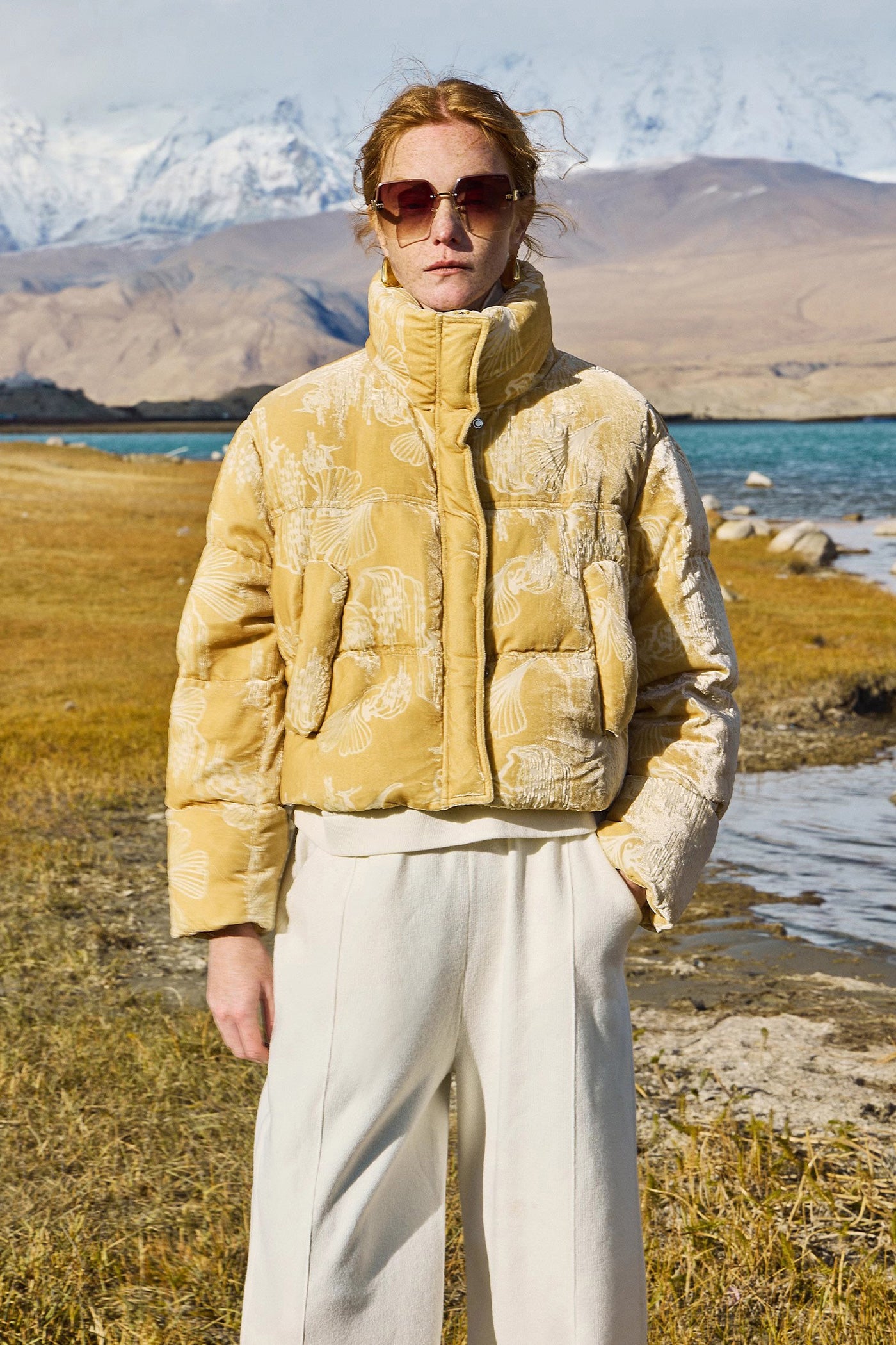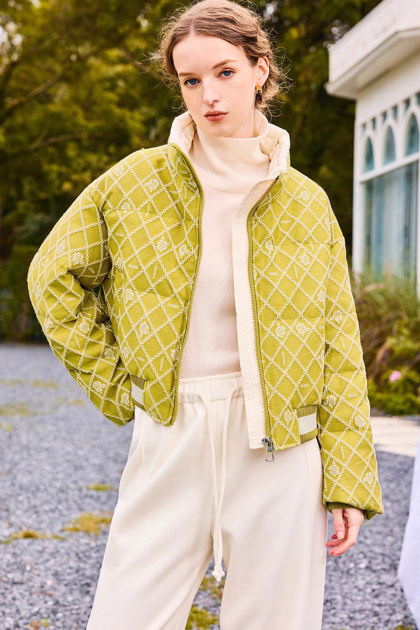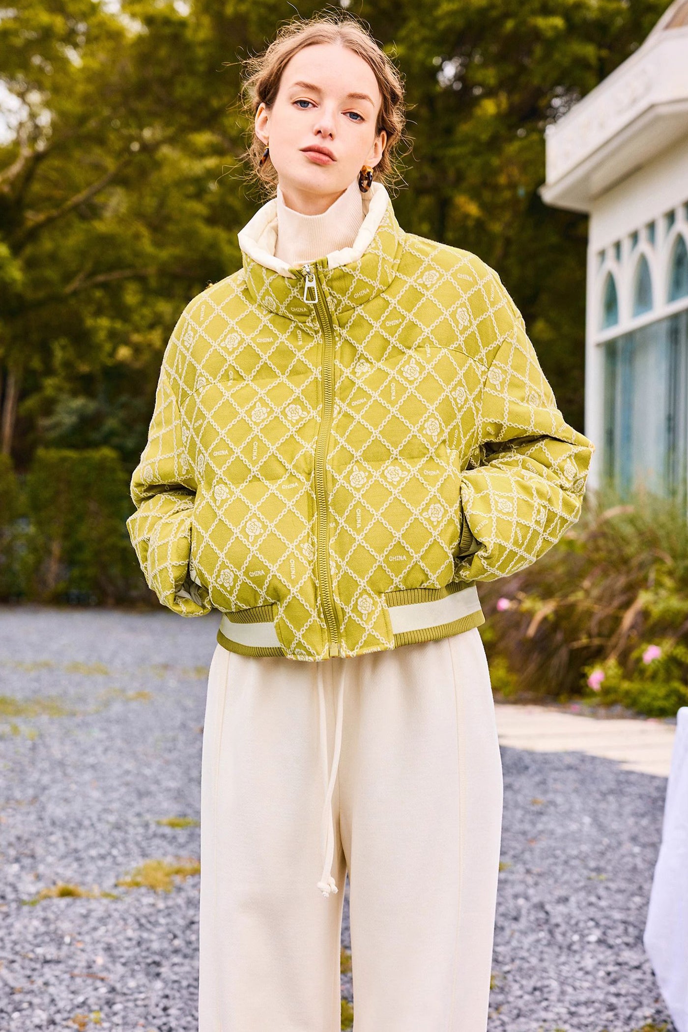 KAMILAN Women's Short Jacquard Print Goose Down Jacket – 2025 Winter New Half Turtleneck Puffer Coat