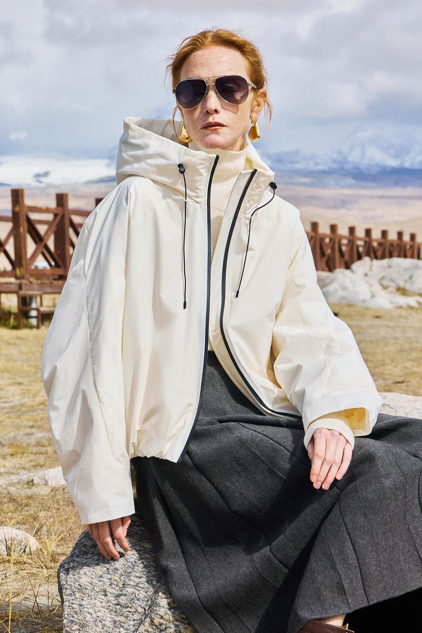 KAMILAN Women's Mid-Length White Goose Down Jacket 2025 Winter Hooded Puffer Coat