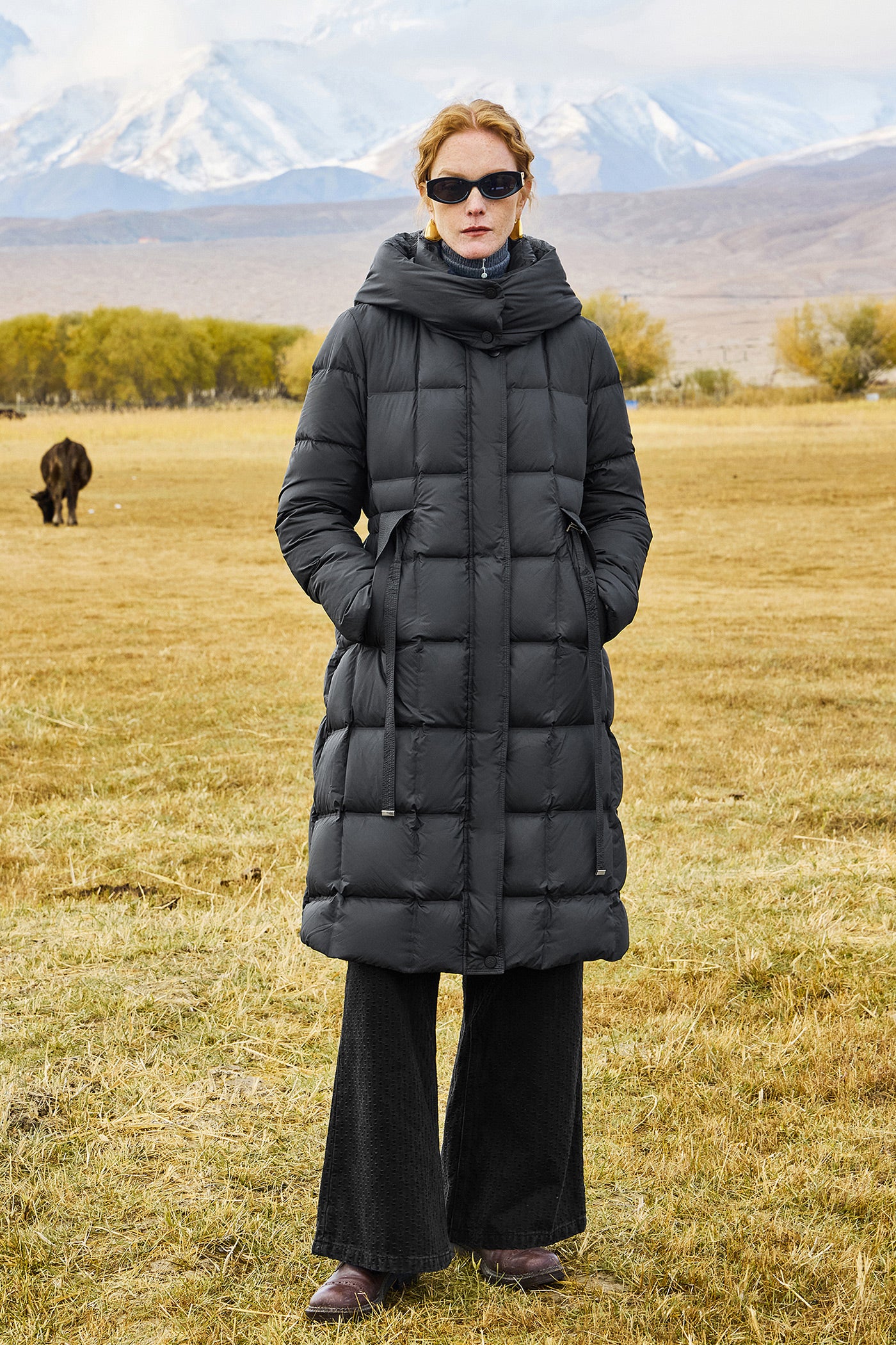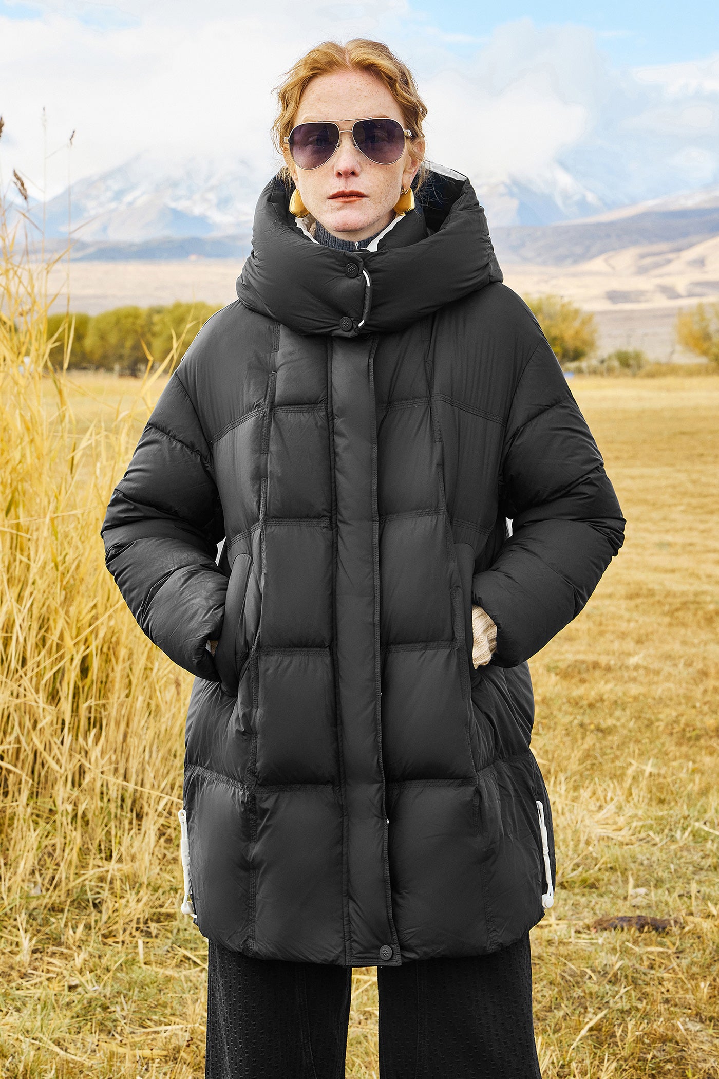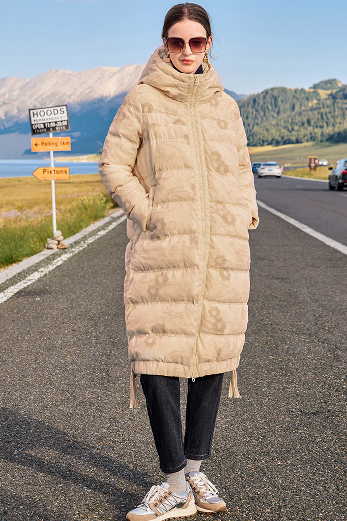 KAMILAN Women's 2025 Winter Over-the-Knee Down Coat Vintage Mid-Length Hooded Puffer Jacket
