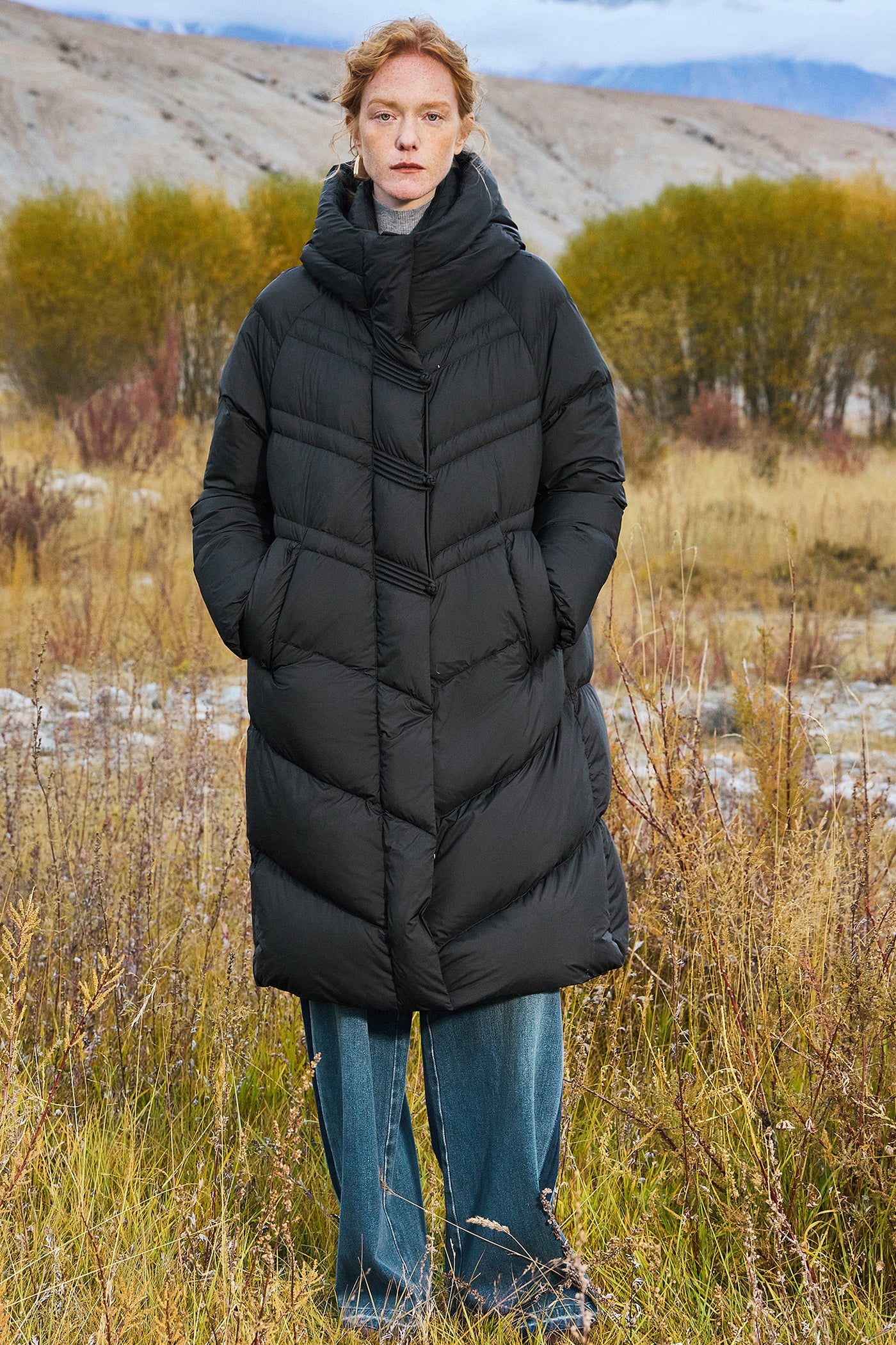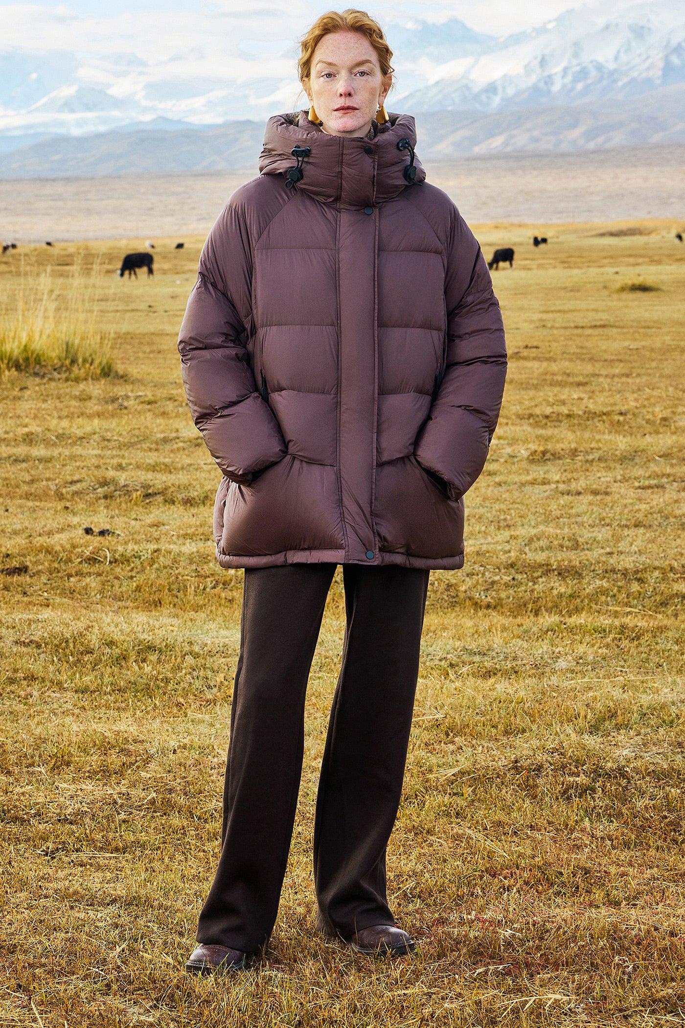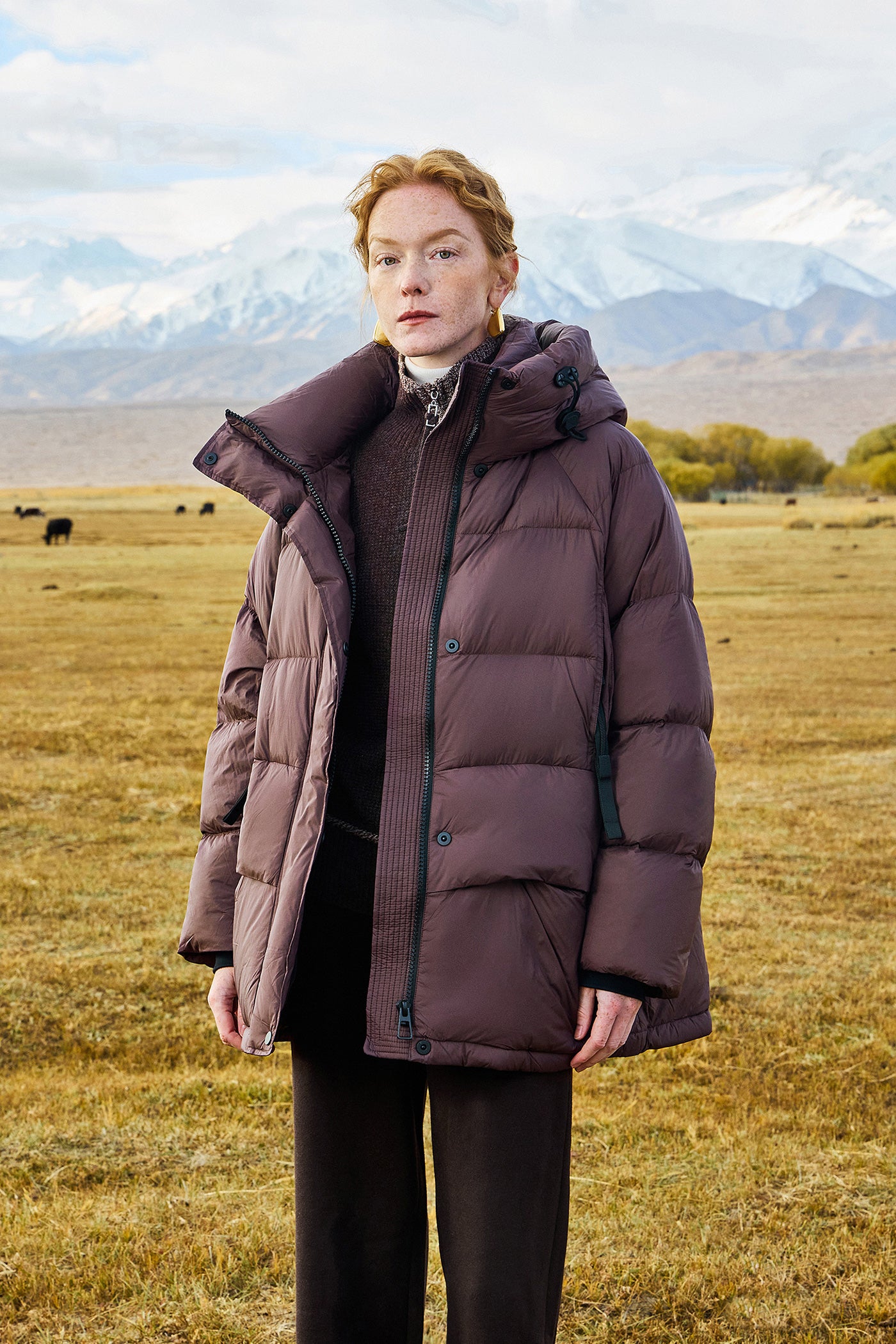 KAMILAN Women's 2025 Winter Over-the-Knee Down Coat Vintage Mid-Length Hooded Puffer Jacket