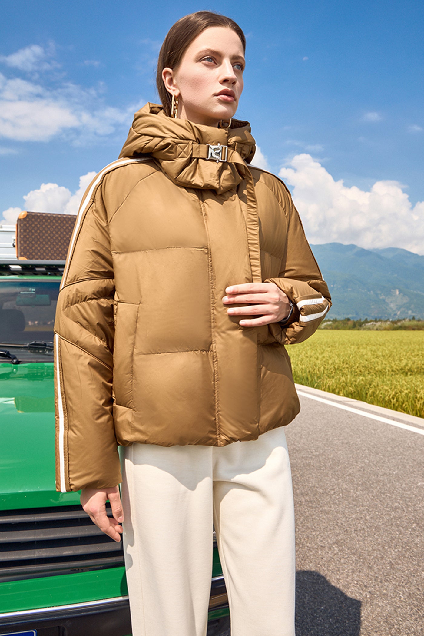 KAMILAN Women's Short Goose Down Jacket 2025 Winter Hooded Puffer Coat with White Goose Down
