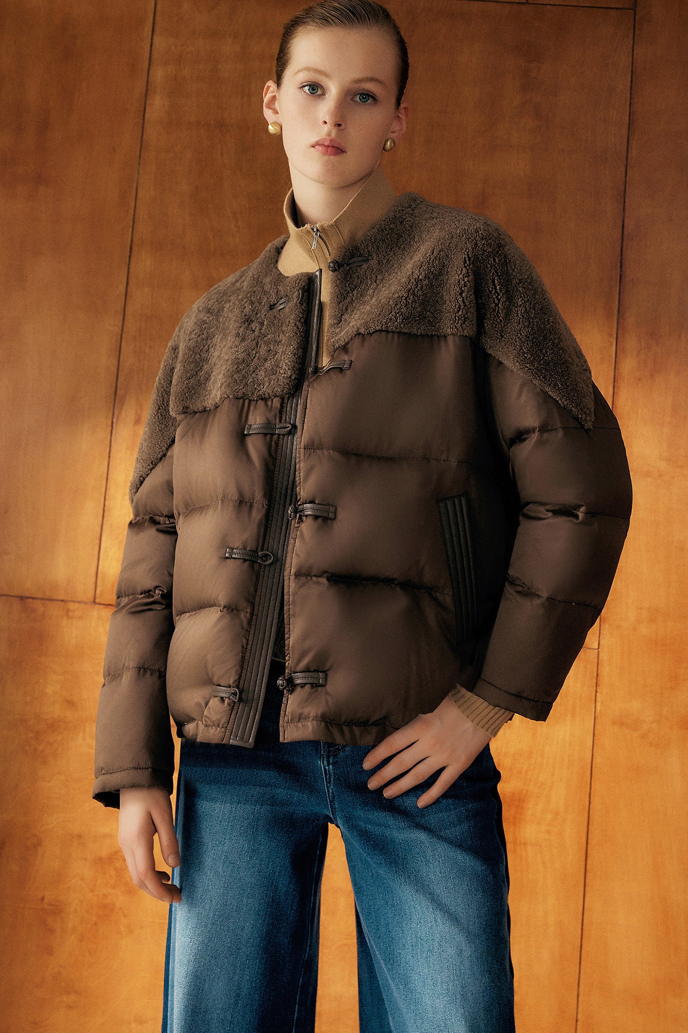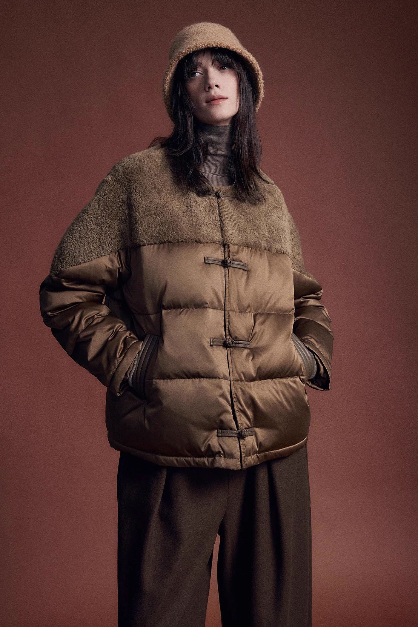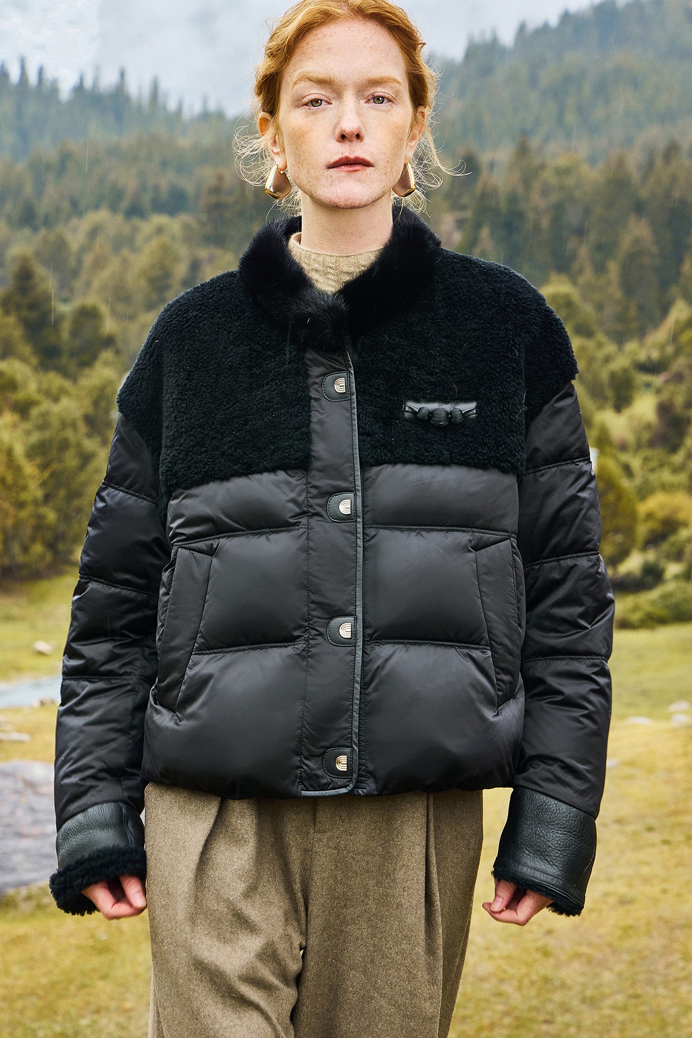KAMILAN Women's Short New Chinese Style Shearling & White Goose Down Jacket 2025 Winter Luxury Puffer Coat