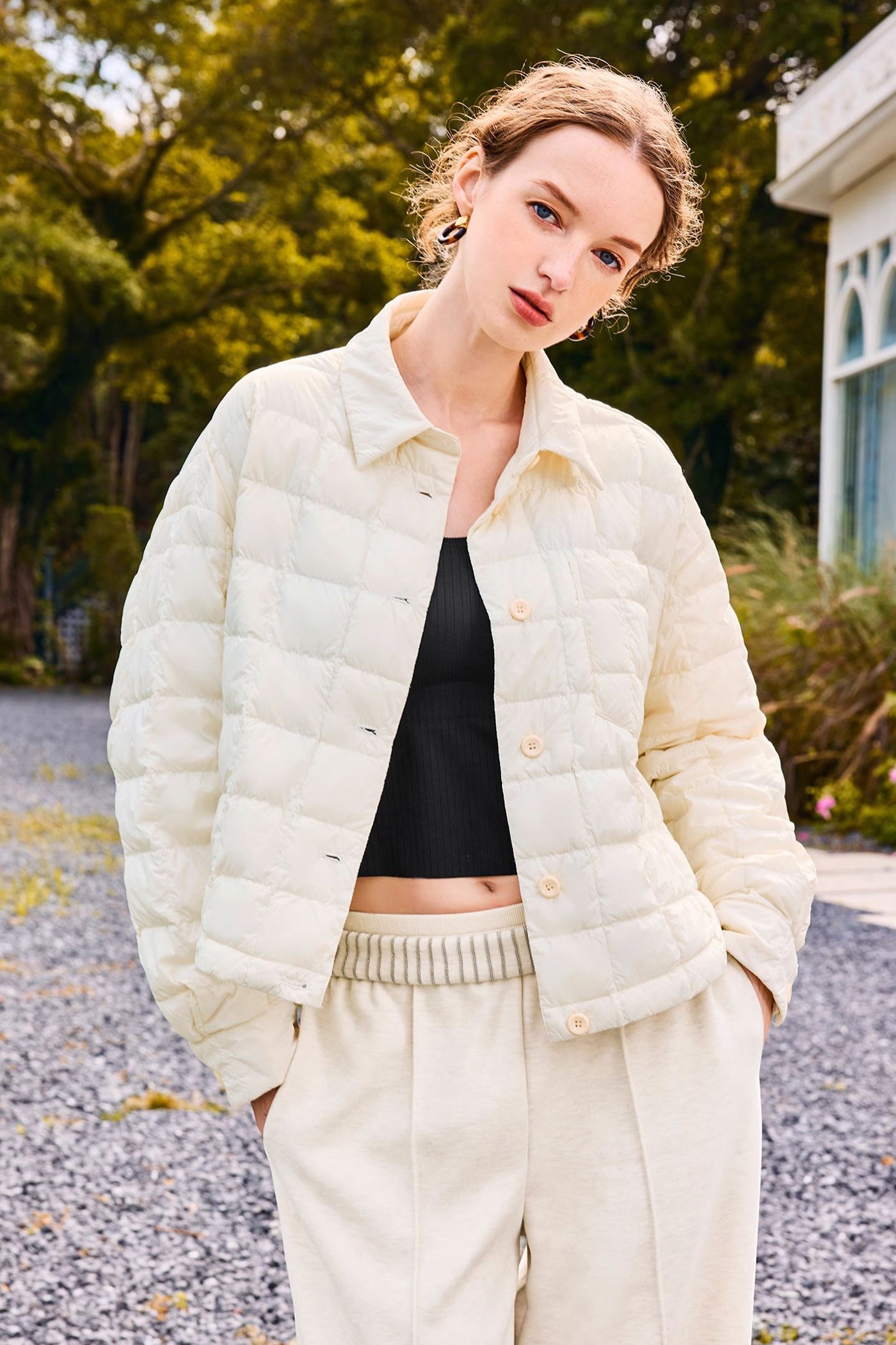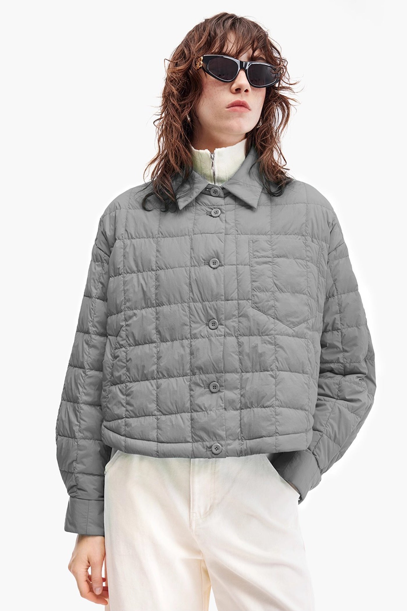 KAMILAN Women's Lightweight Short White Goose Down Jacket 2025 Winter Shirt-Style Puffer Coat