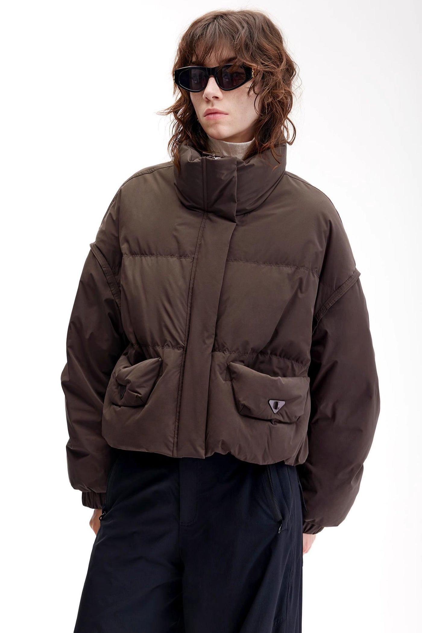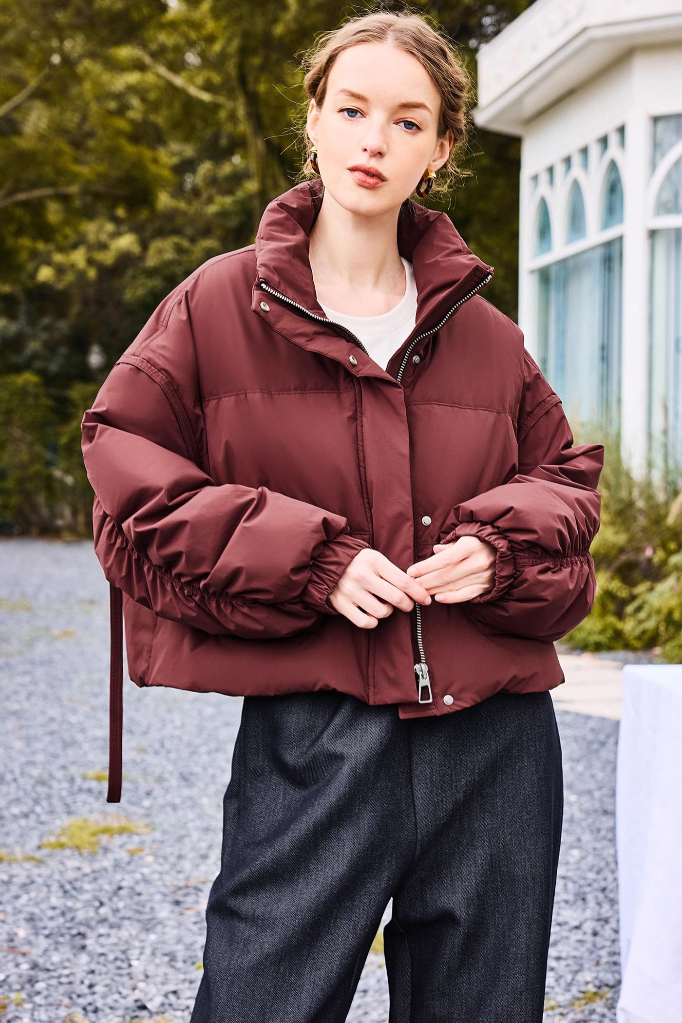 KAMILAN Women's Short Down Puffer Jacket 2025 Winter Casual High-Neck White Duck Down Coat for Petite Figures