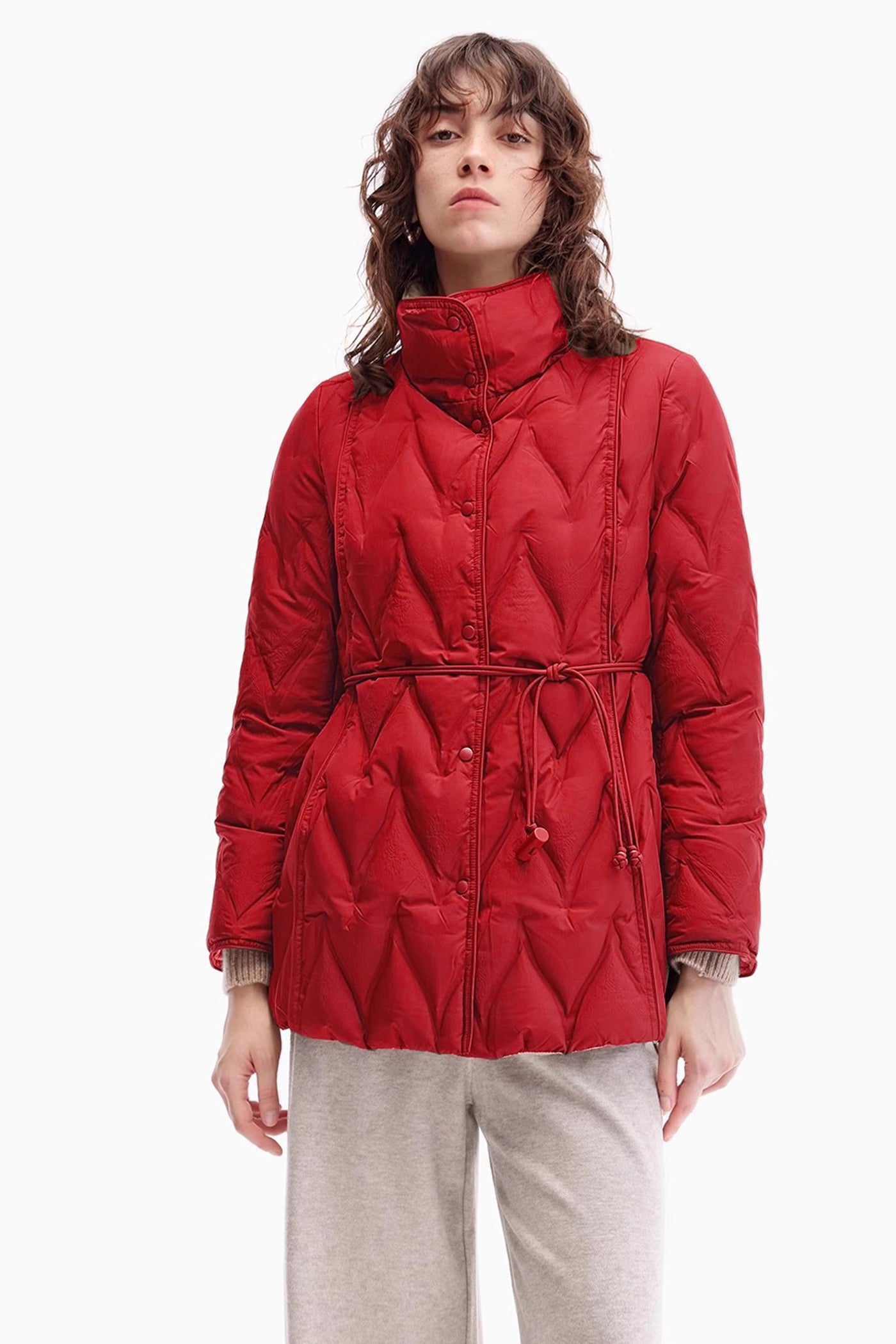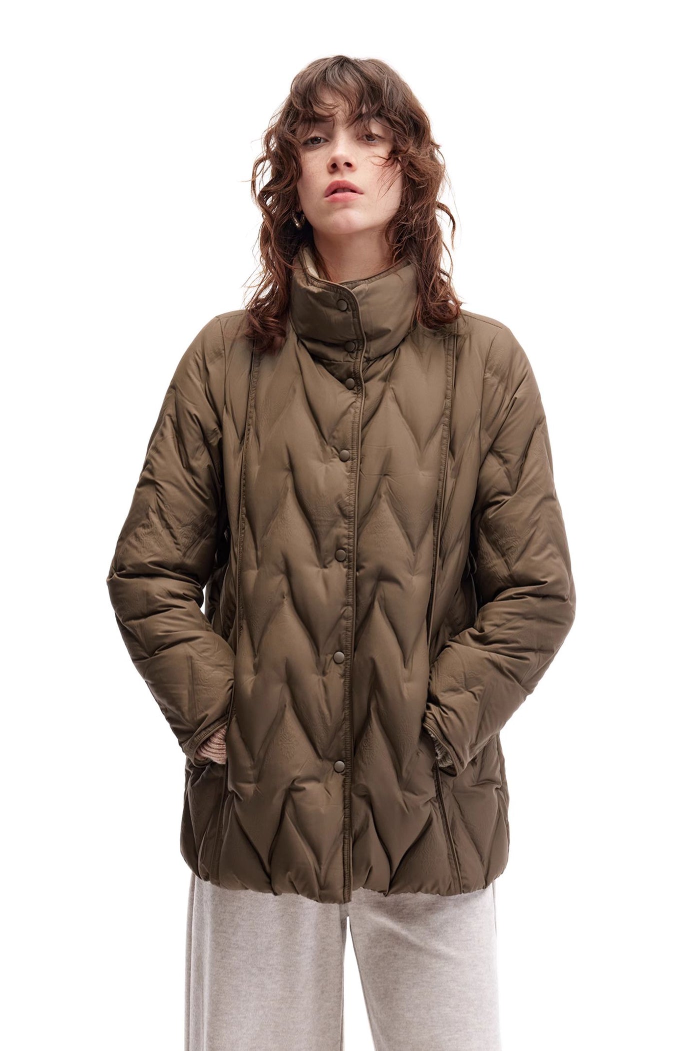 KAMILAN Women's Jacquard Diamond Quilted Down Jacket 2025 Winter High-Neck White Duck Down Puffer Coat