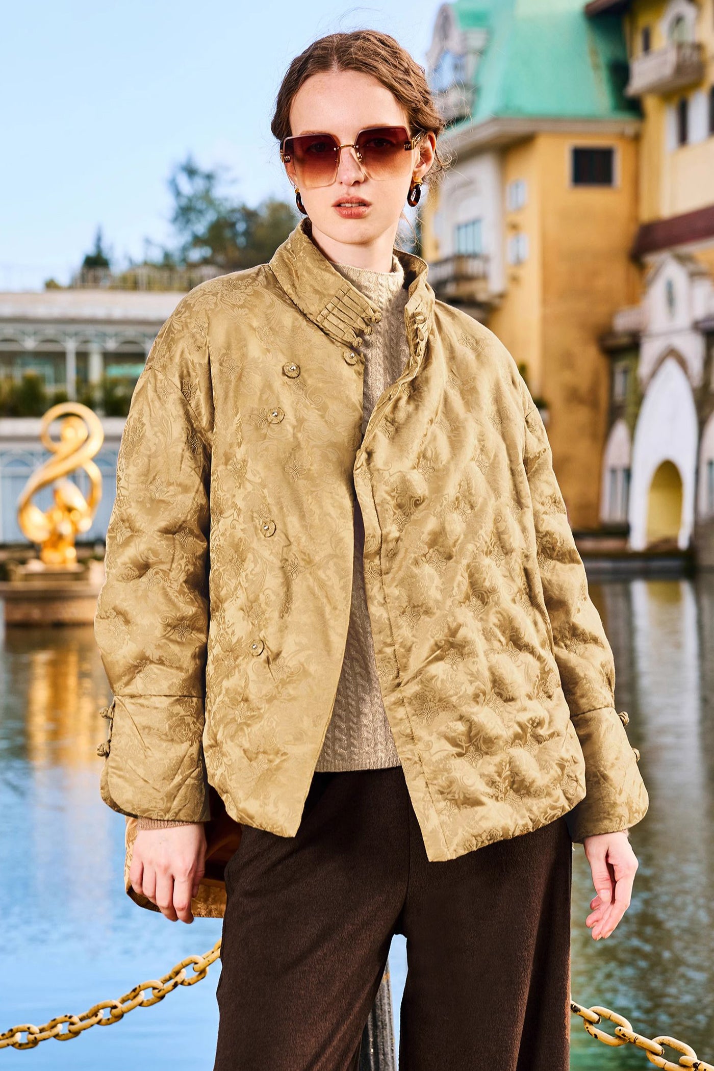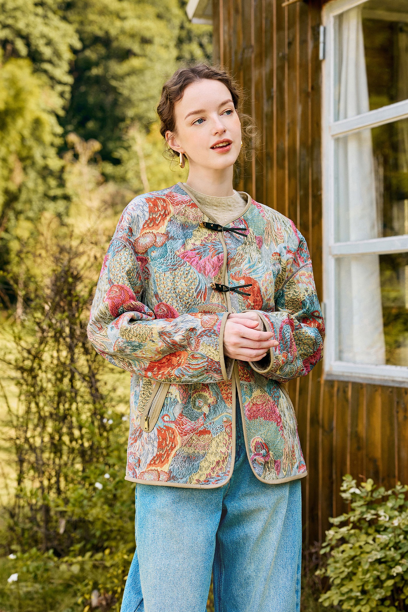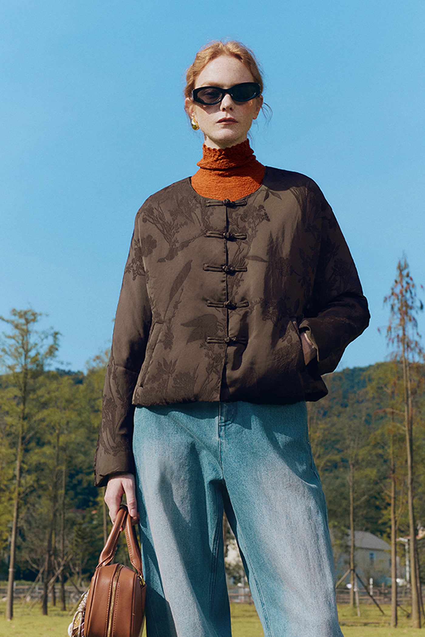 KAMILAN Women's Short Jacquard Down Jacket 2025 Fall New Chinese Style Goose Down Coat