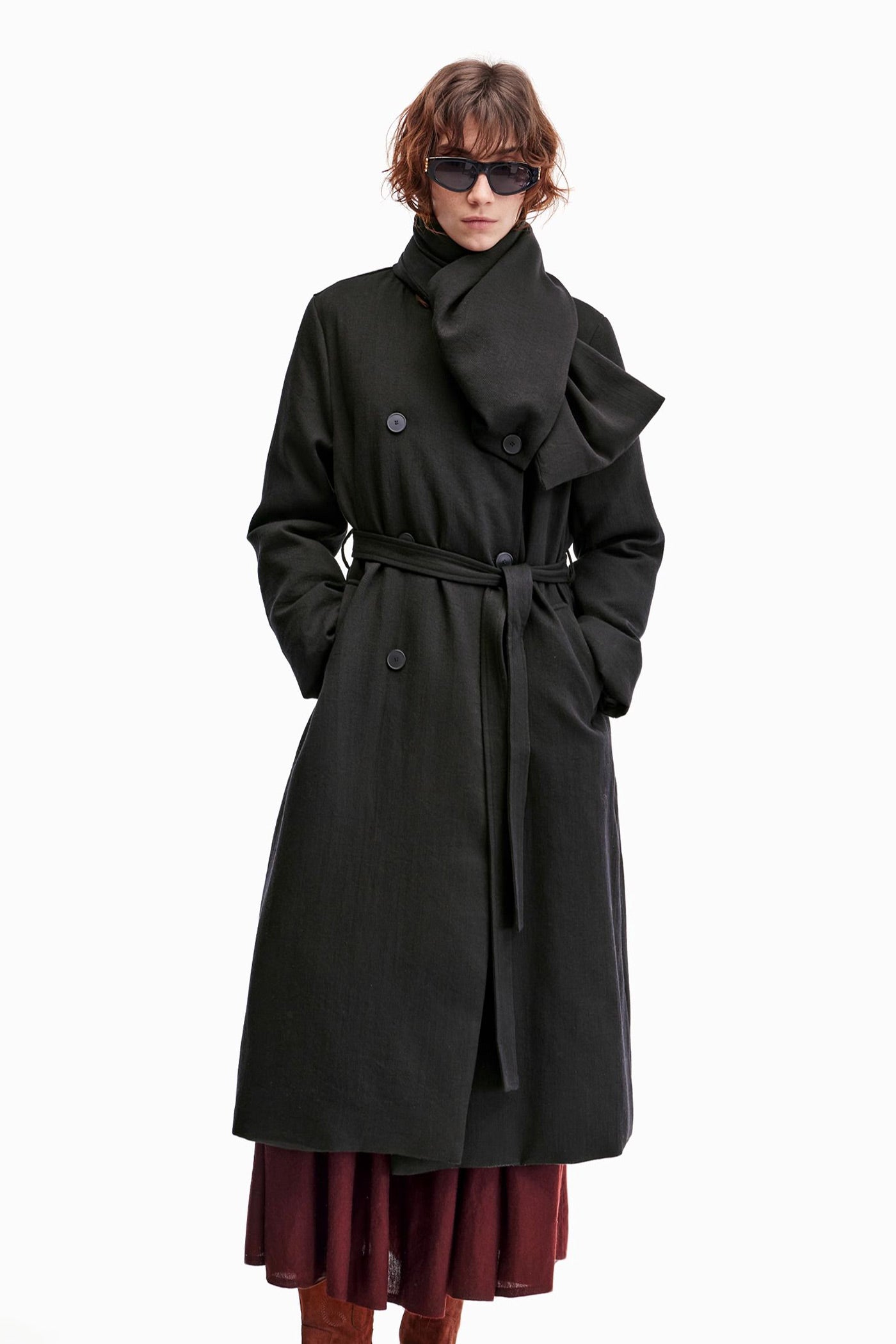 KAMILAN Women's Red Wool Blend Double-Faced Coat 2025 Fall/Winter Loose Fit Mid-Length Elegant Overcoat