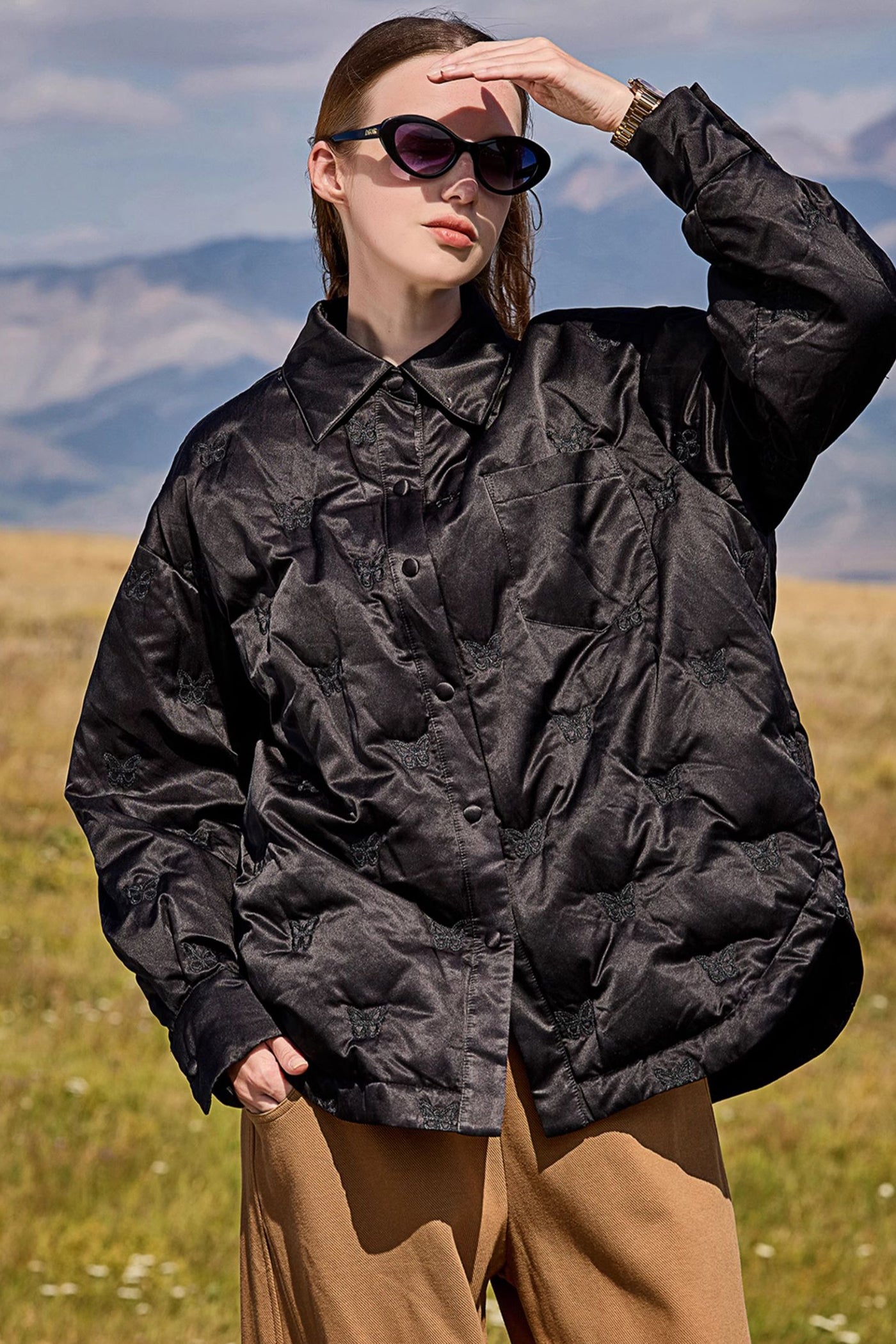 KAMILAN Women's Shirt-Style Down Jacket 2025 Winter Embroidered White Goose Down Coat, Warm Mid-Length Outerwear