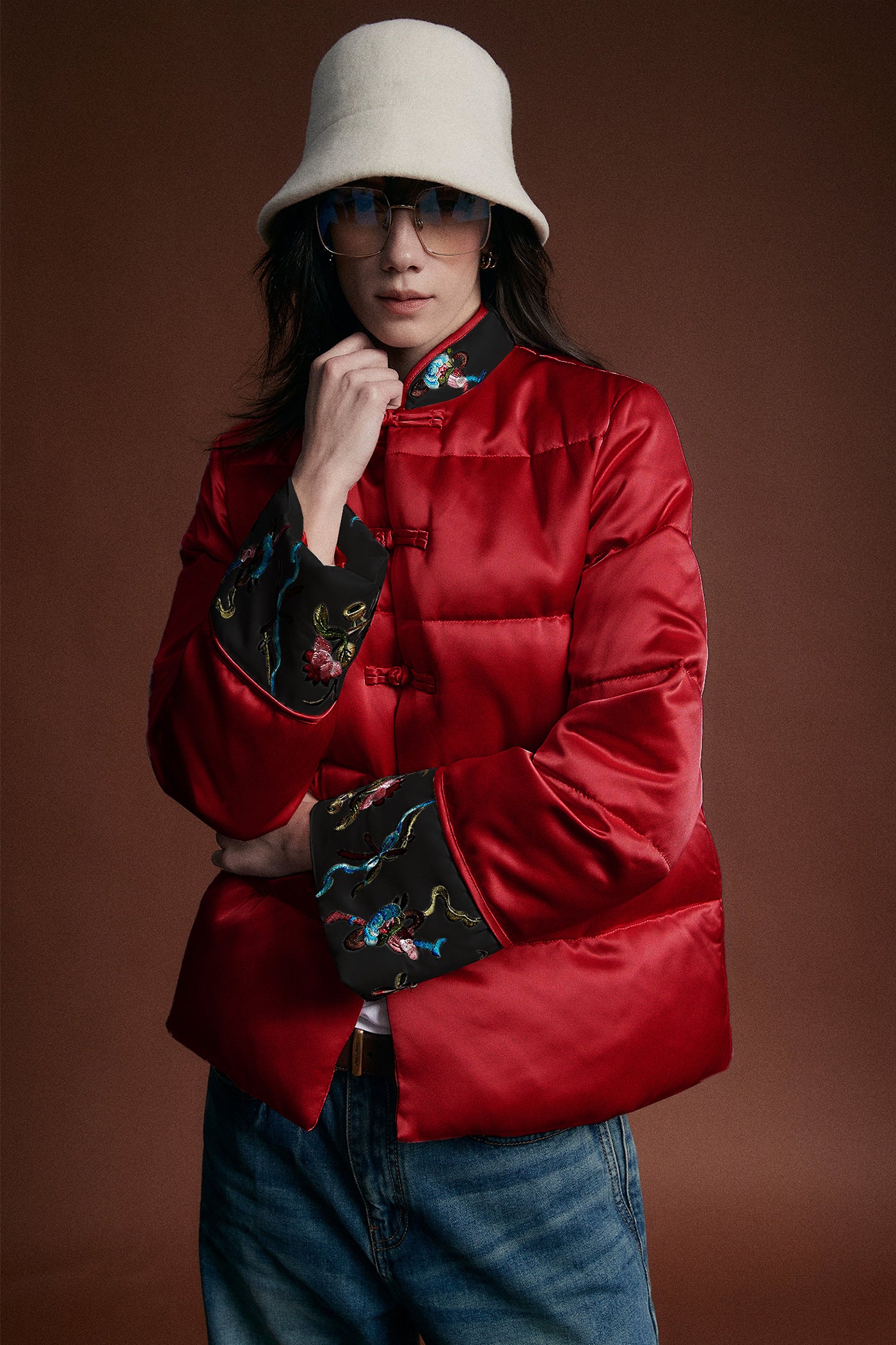 KAMILAN Women's Short Vintage New Chinese Style Embroidered White Duck Down Jacket 2025 Winter Puffer Coat