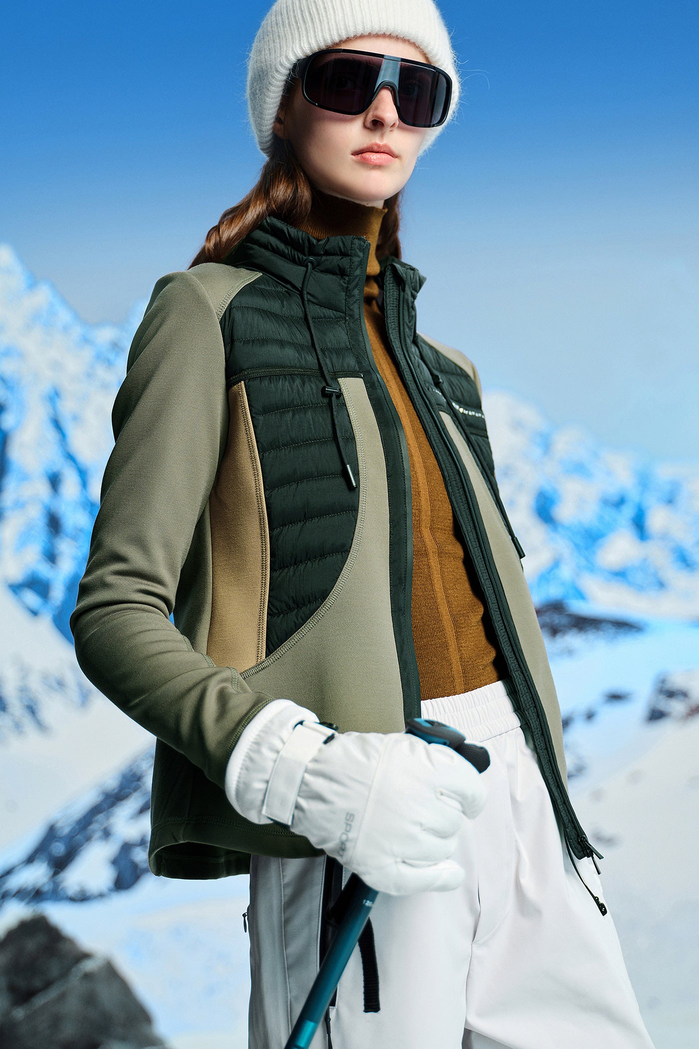 KAMILAN knitted splicing down jacket women's new style 2025 winter warm long down jacket with detachable hood.