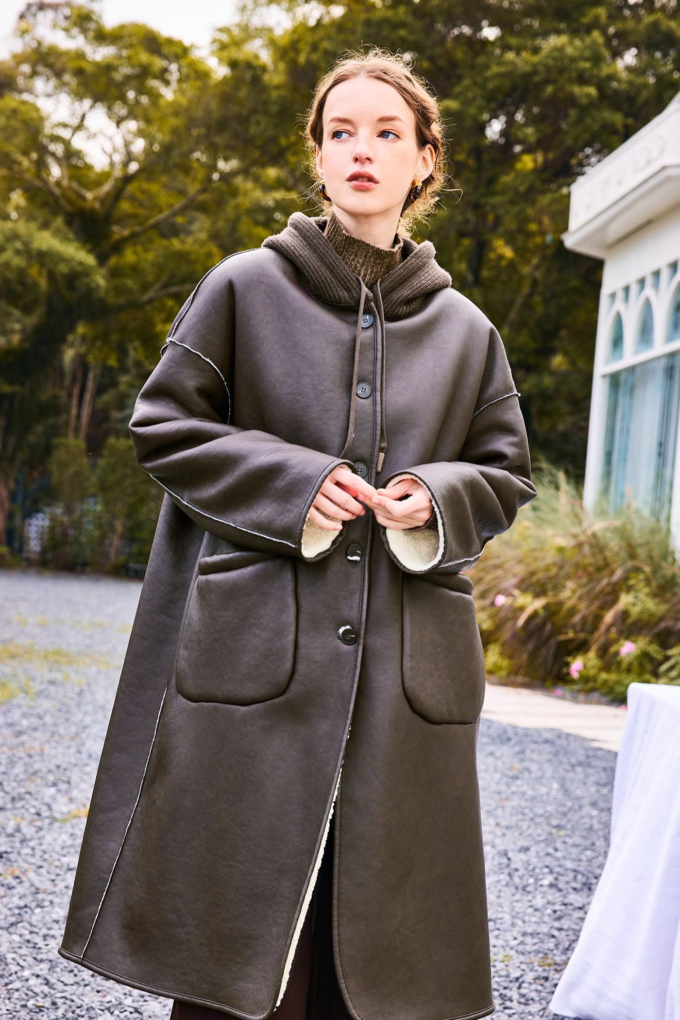 KAMILAN Women's Faux Fur Coat 2025 Winter Reversible Hooded PU Leather & Knit Overcoat