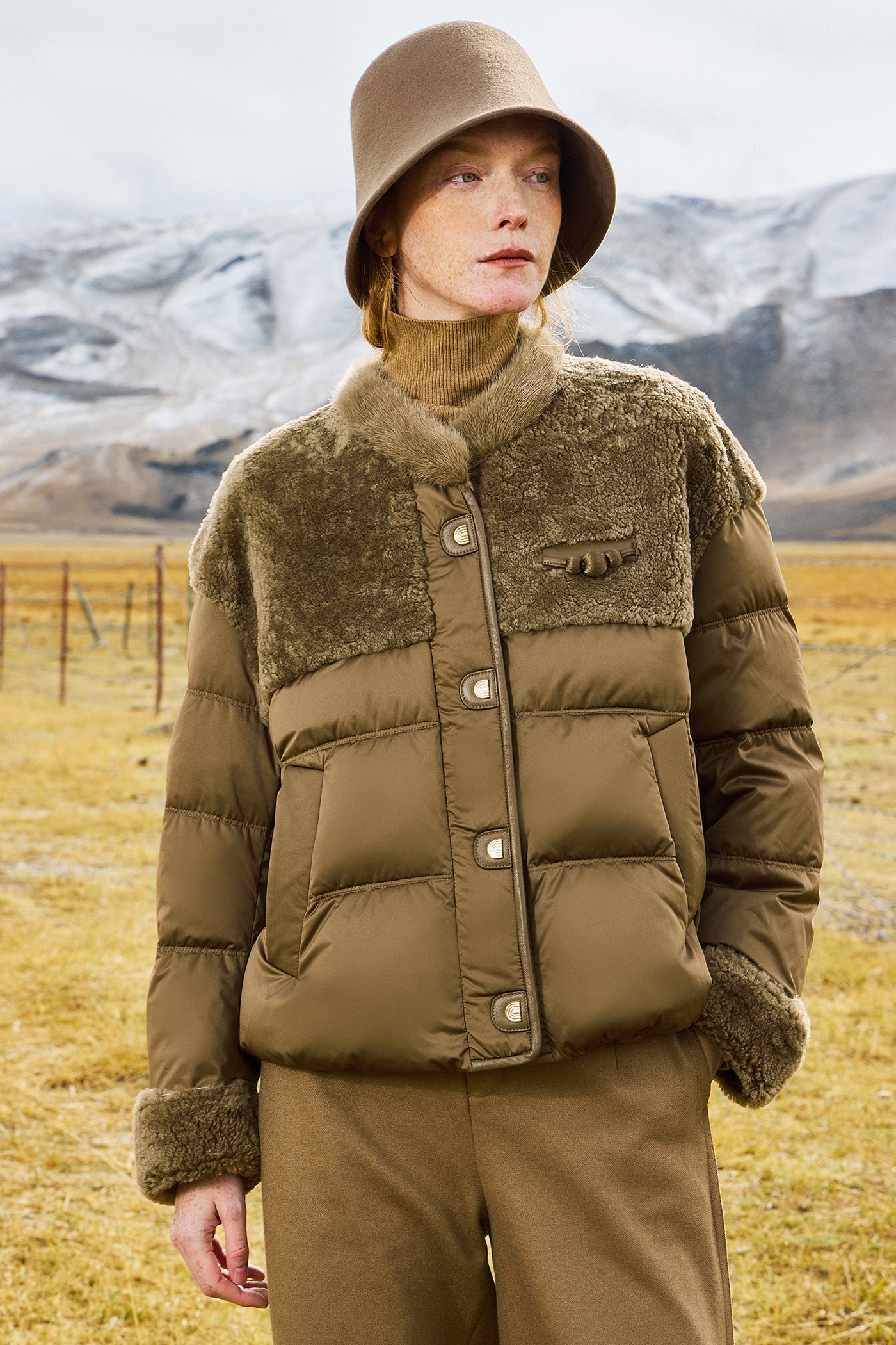KAMILAN Women's Shearling & White Goose Down Coat with Mink Fur Collar | 2025 Winter Warm Puffer Jacket