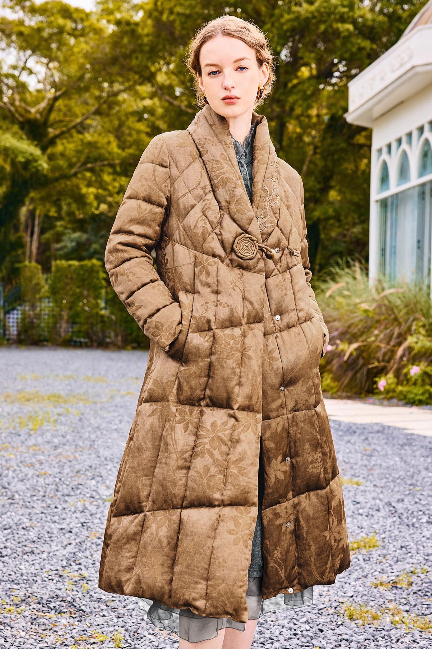 KAMILAN Jacquard White Goose Down Jacket Women's 2025 Winter New Long Down Jacket
