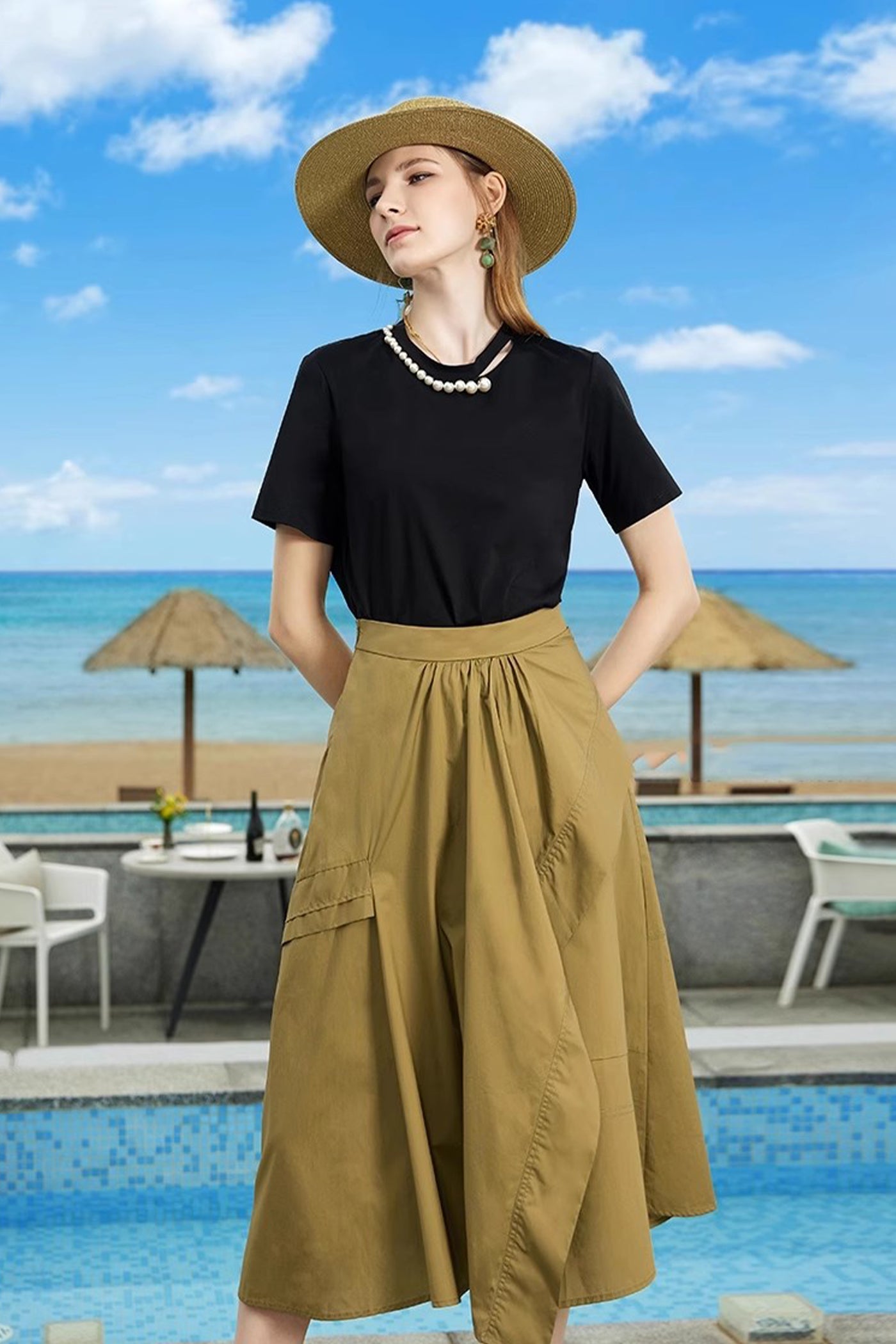 KAMILAN Asymmetrical High-Waisted A-Line Skirt