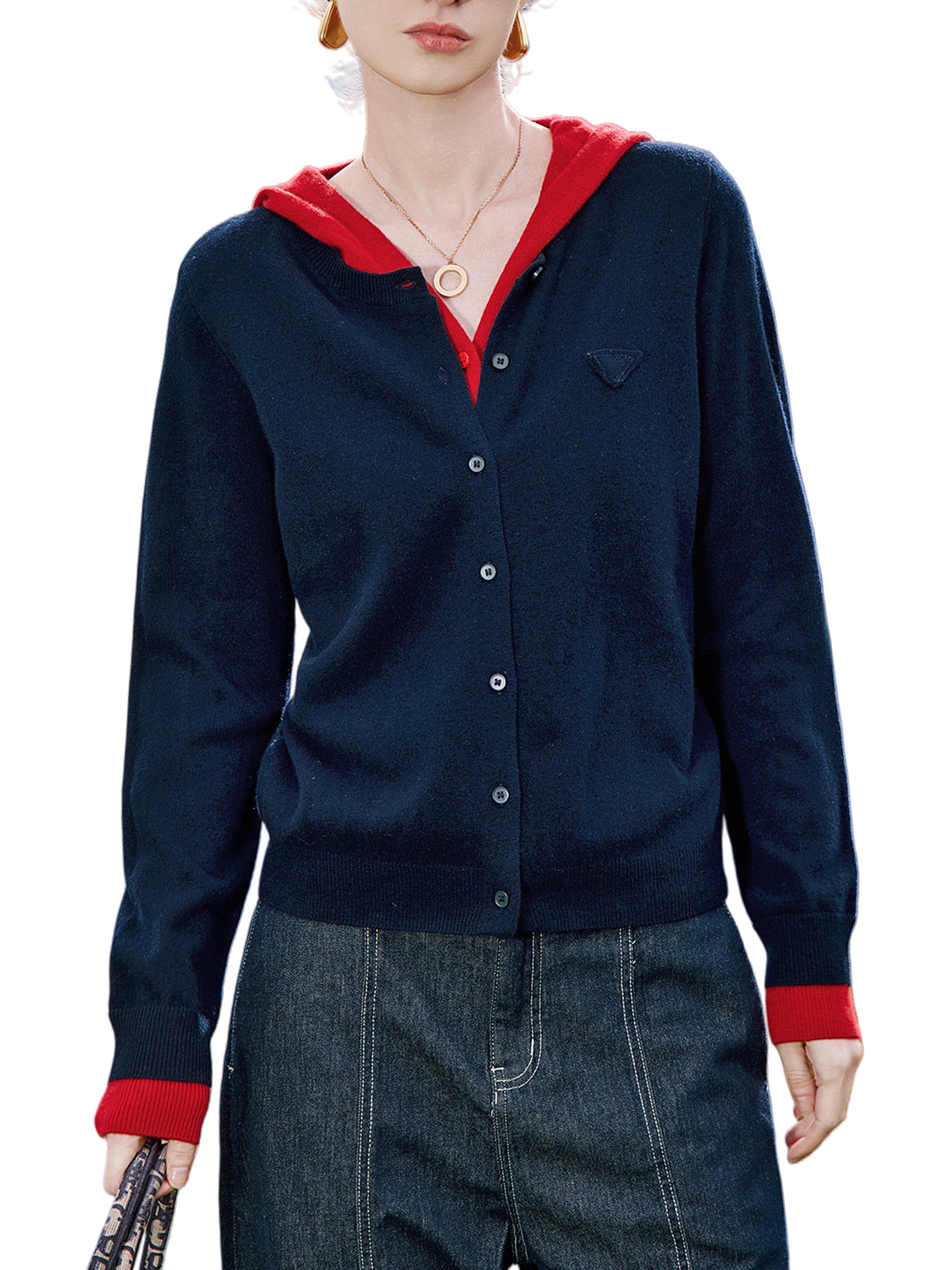 KAMILAN Women’s 2025 Fall 100% Merino Wool Colorblock Hooded Knit Cardigan Button-Front Soft Loose-Fit Sweater Jacket