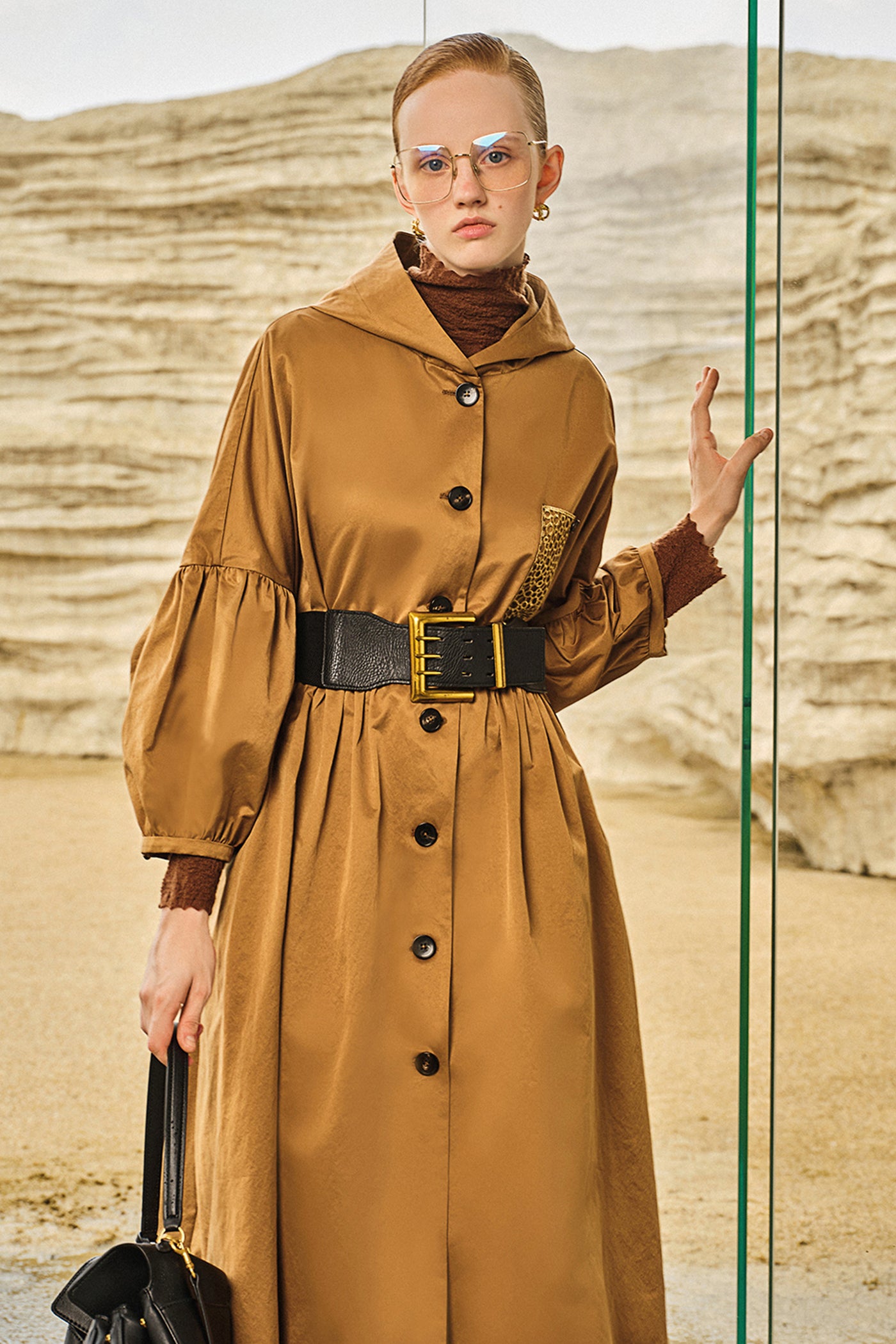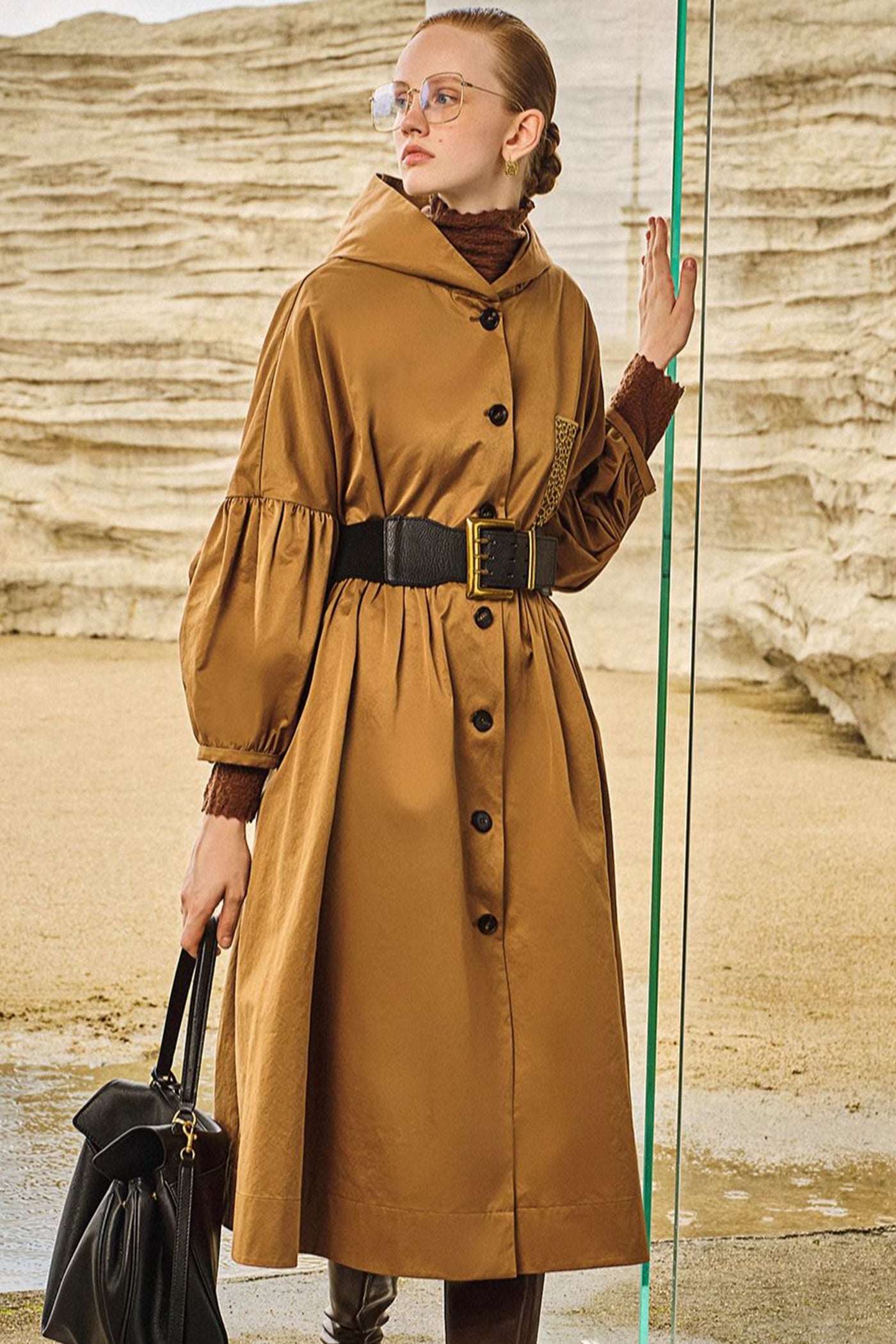 KAMILAN French style design windbreaker women's autumn 2025 new lantern sleeves long trench coat hooded.