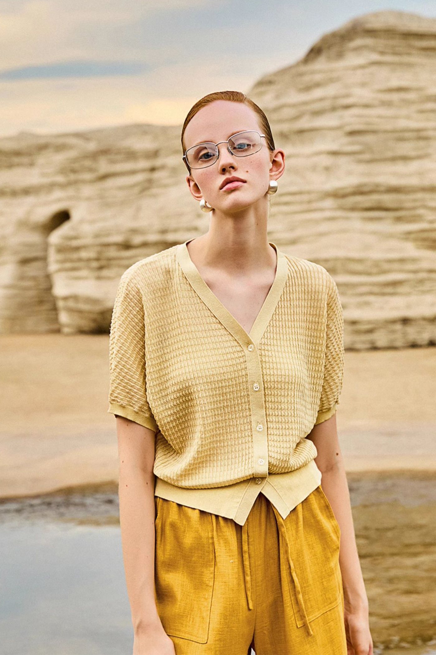 KAMILAN French style temperament short sweater women's autumn new short-sleeved V-neck cardigan coat jacket