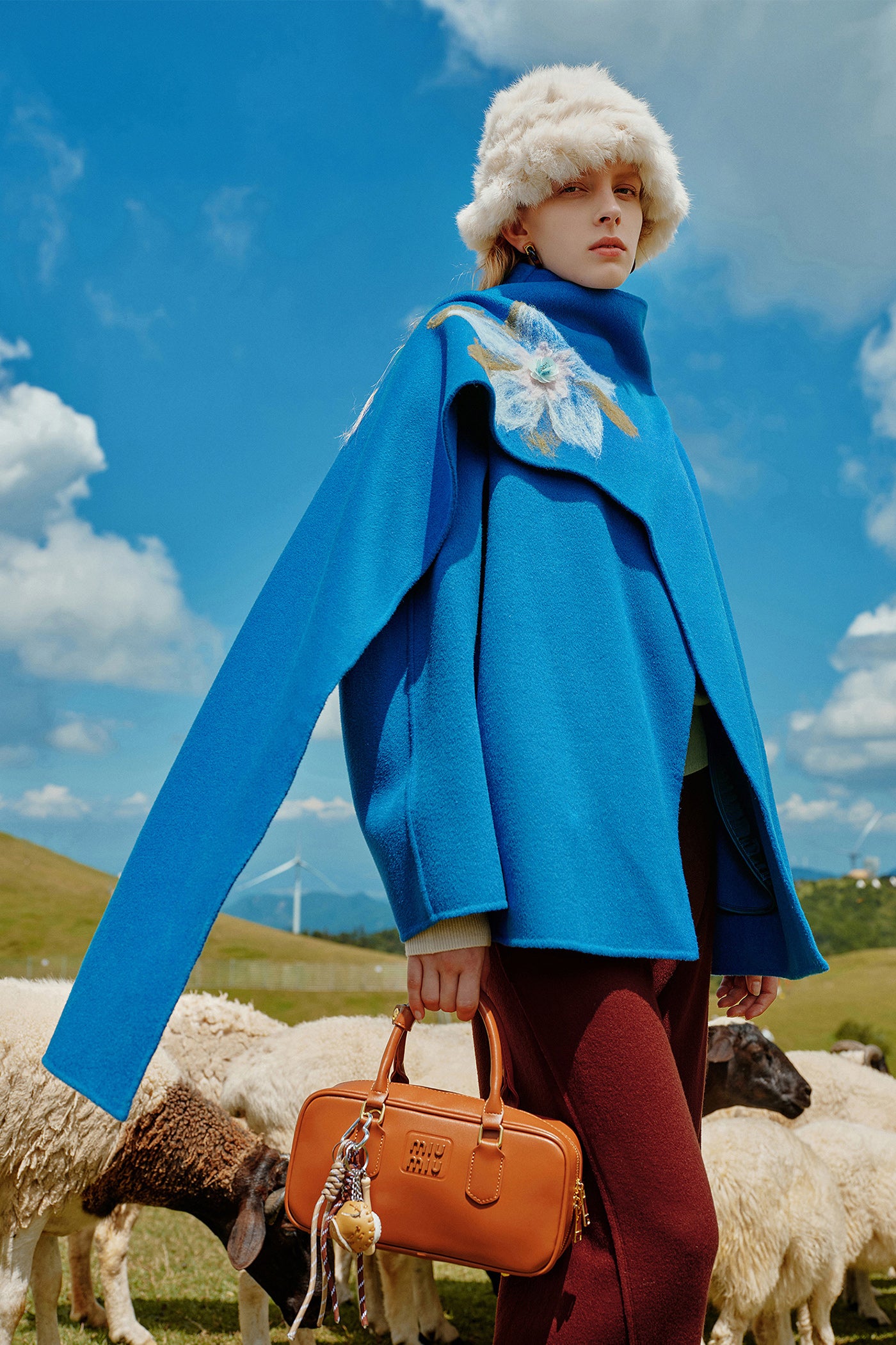 KAMILAN Women's Short Double-Faced Wool Coat – 2025 Autumn New Scarf-Collar Jacket